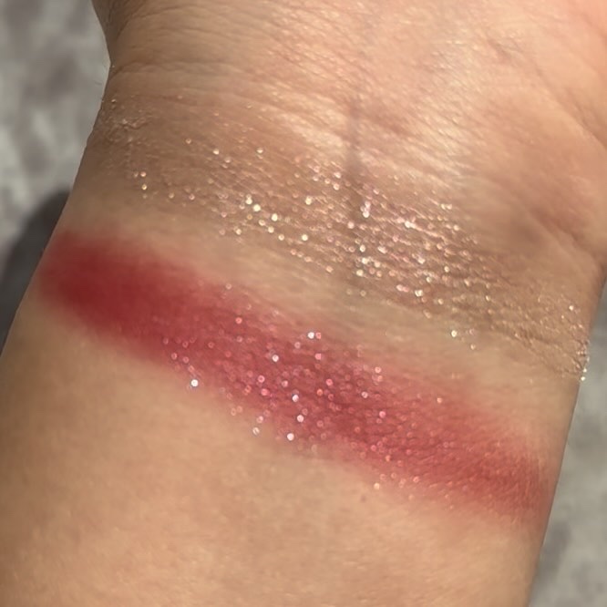 このパレットは、黄味が少なめでブルベにも使いやすいブラウン。 発色はしっかり目だけど、ブラシで調節も可能なので幅広い人に使いやすいパレットだと思います🎀✨ ラメ感も少しずつ異なり、華やかさを抑えたい時は右上を多めに使うと品の良いツヤのあるピンクブラウンメイクになります💎✨ 左上のラメカラーは白っぽいのでどんなアイシャドウとも相性抜群! この可愛い色味と煌びやかなラメは唯一無二です!