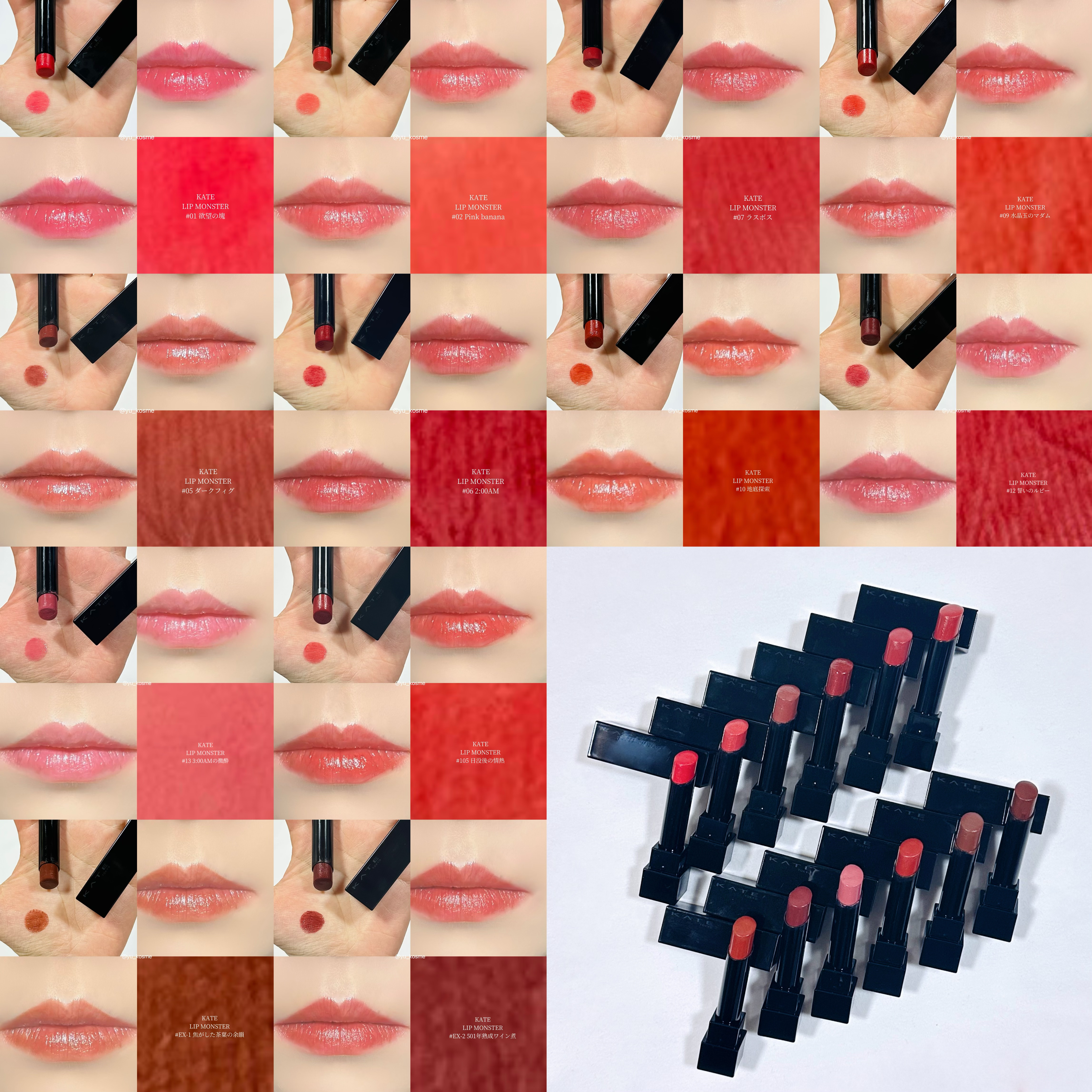 KATEリップモンスター01欲望の塊ブルベ夏02ピンクバナナイエベ春03陽炎イエベ春04パンプキンワインイエベ秋05ダークフィグブルベ冬062:00AMブルベ冬07ラスボスブルベ夏ブルベ冬☆08モーブシャワーブルベ夏☆09水晶玉のマダムブ...