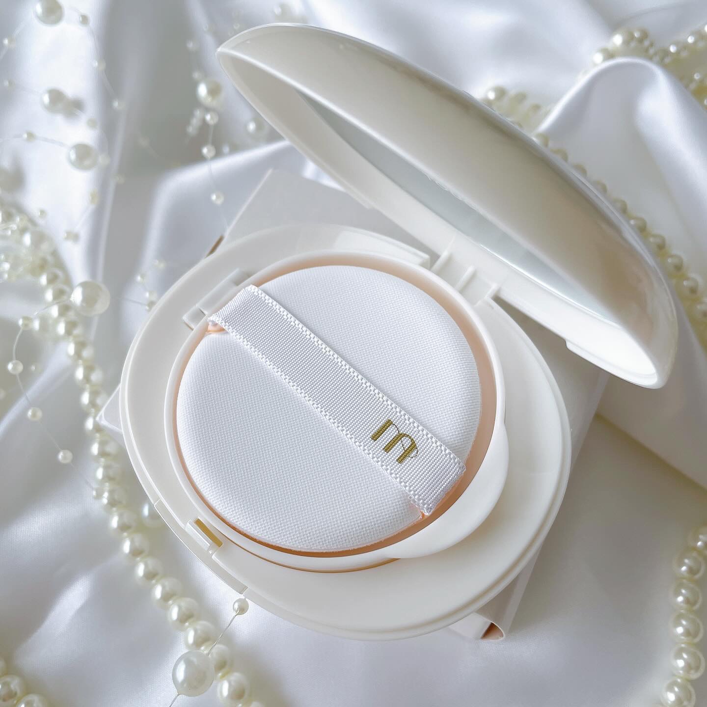 スキンケア成分配合で軽い付け心地だし サラッとした表面と中はしっとりもっちり墓室してくれてる感じ。 白玉肌が長時間続くとあったけど 高温多湿の日は正直とんでもなく崩れた😂 どちらかというと秋冬向けなクッションの印象!!