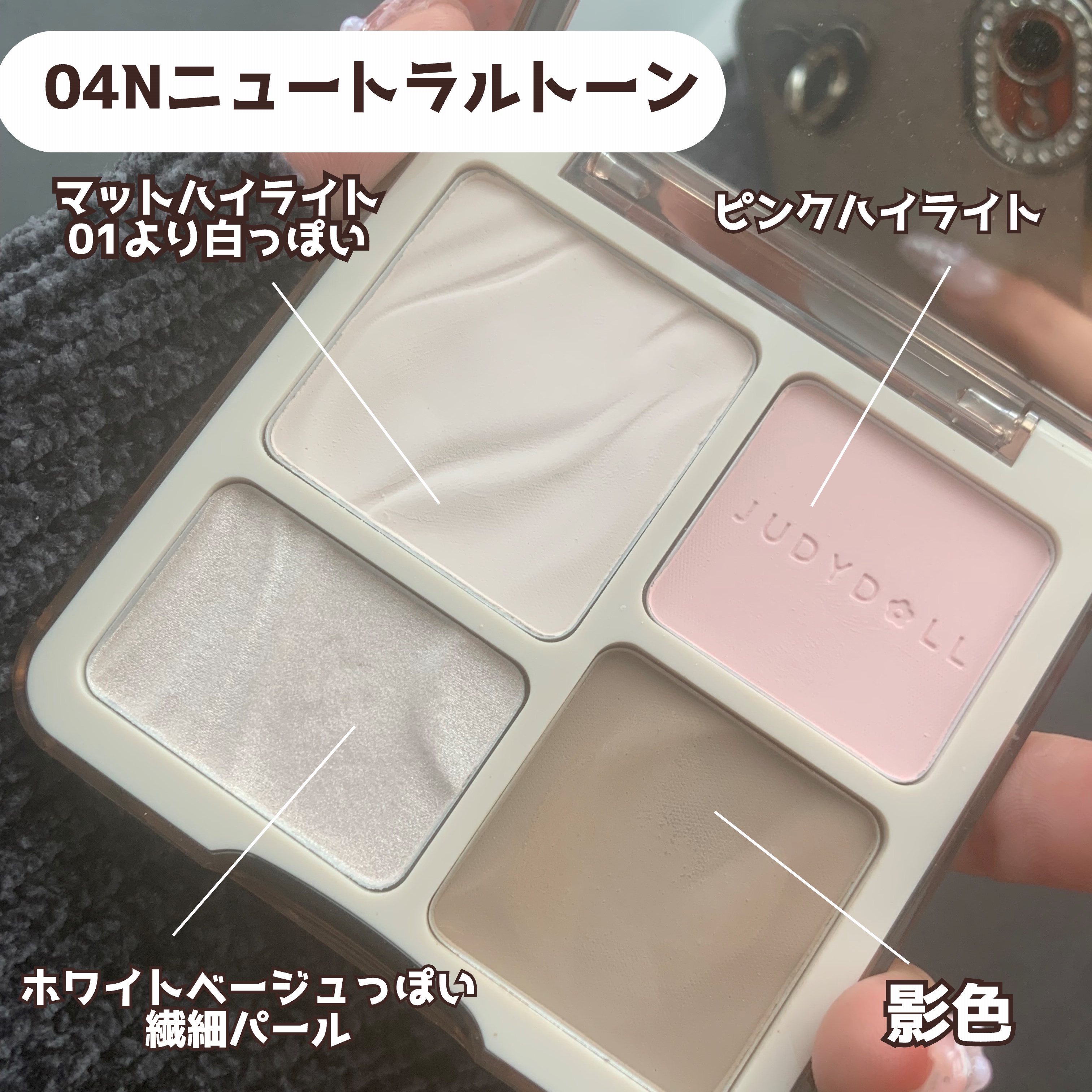リニューアルでハイライトカラーが増量されてさらに使いやすくマットハイライト、パールハイライト、ピンクハイライト、シェーディングカラーの4色でナチュラルなのに陰影・艶を強調できてまさにメリハリのある顔立ちに。 ニュートラルトーンとありますが黄みは感じずブルべにおすすめ☺️🌸