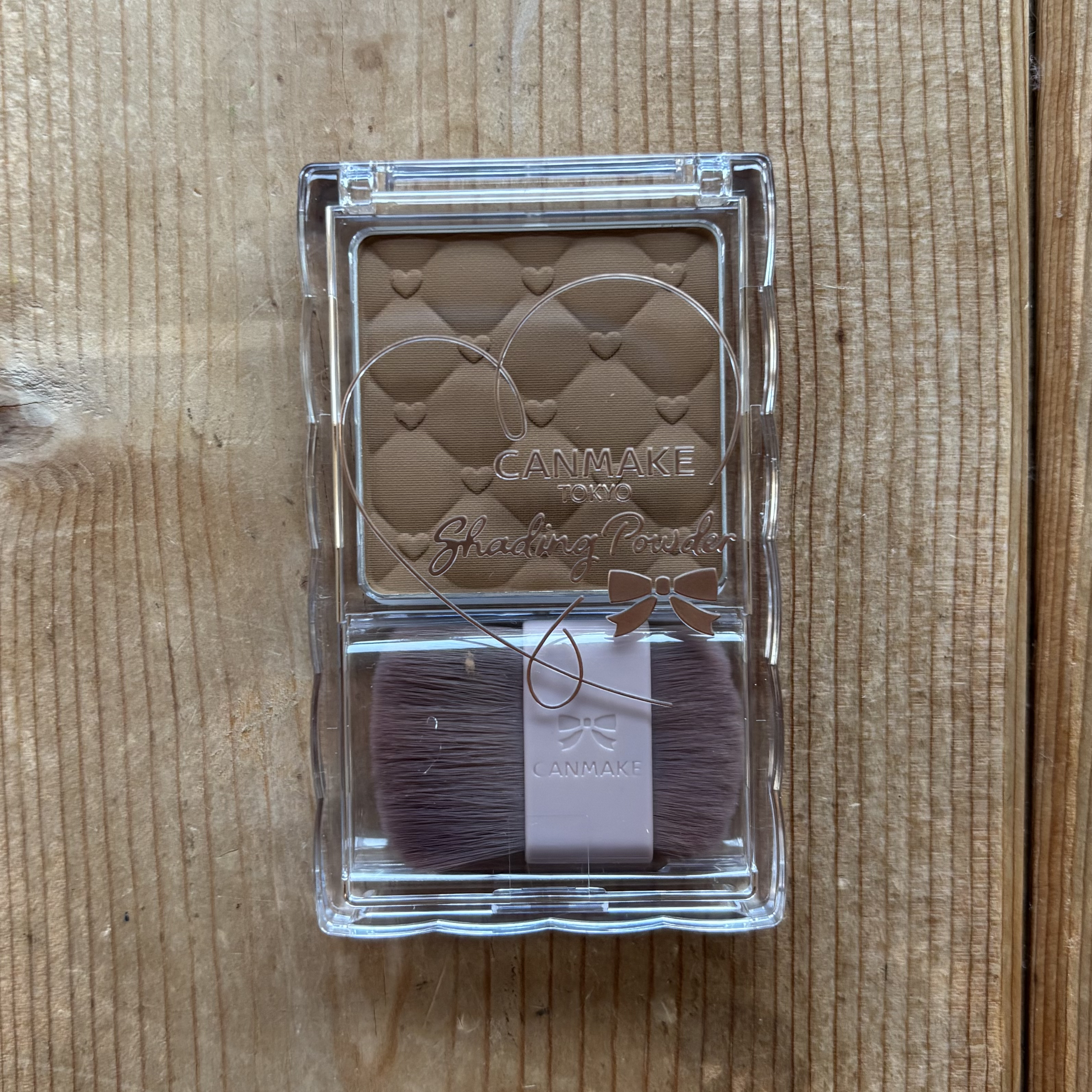 キャンメイクシェーディングパウダー05ムーングレージュというカラーです。これは日本人の肌に合う色だと思います!748円(安すぎ)ドラストで購入できます。 粉質はサラサラで、筆付きなのでめちゃくちゃ楽ちんです。ありがとう。底見えまでに3年かかってるのでコスパもいいです。 色味は本当に肌に馴染みます。自然。ナチュラル。ナチュラルボーン。
