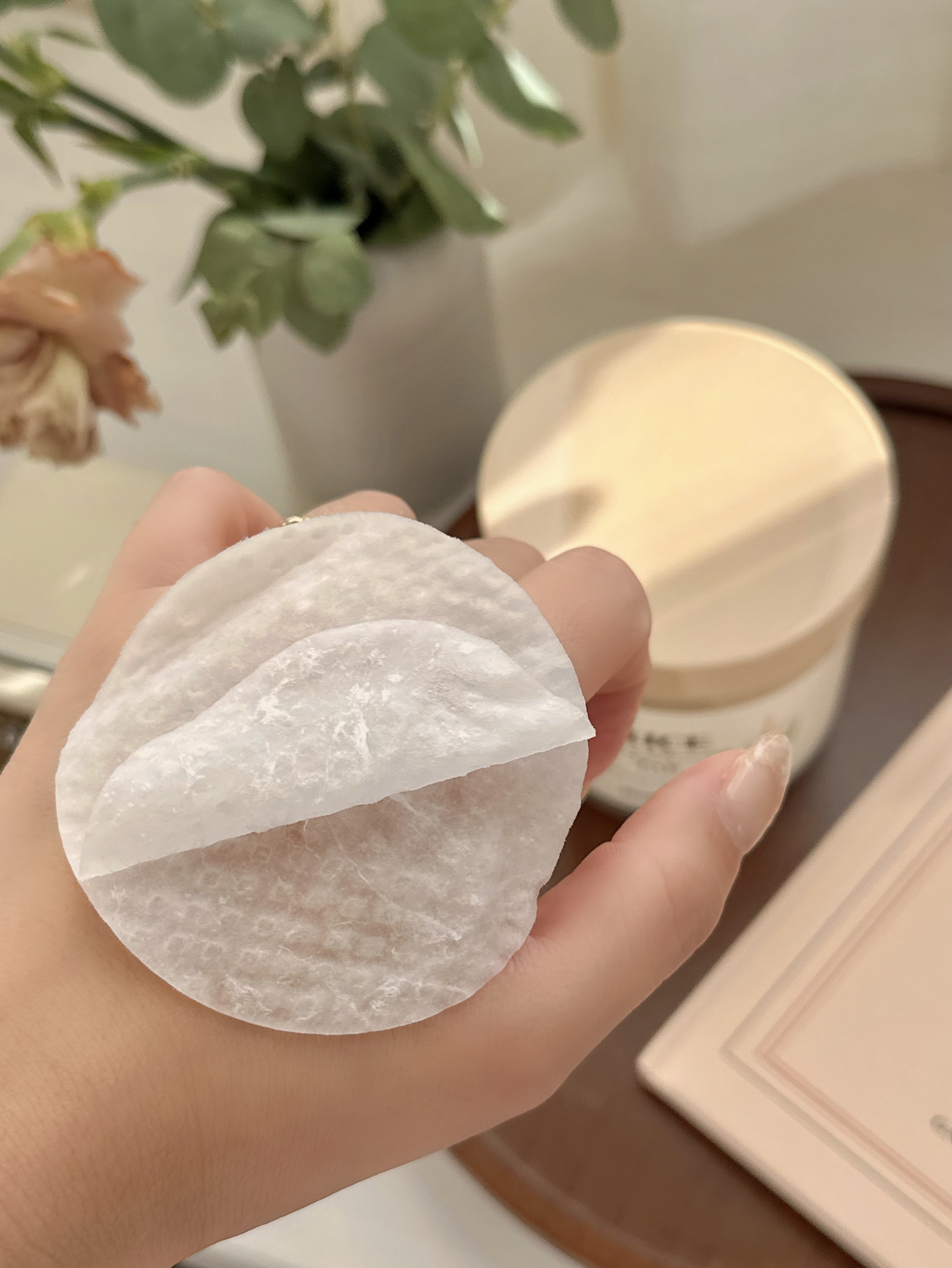 ブライトニング&毛穴ケア両方手放す事ができない人にピッタリのパッド✨ 凸凹のあるしっかりとした厚手シートだから拭き取り美容にぴったり! テクスチャーはベタつきもなく、ウォータリーでしっかり保湿されてるように感じました🫧