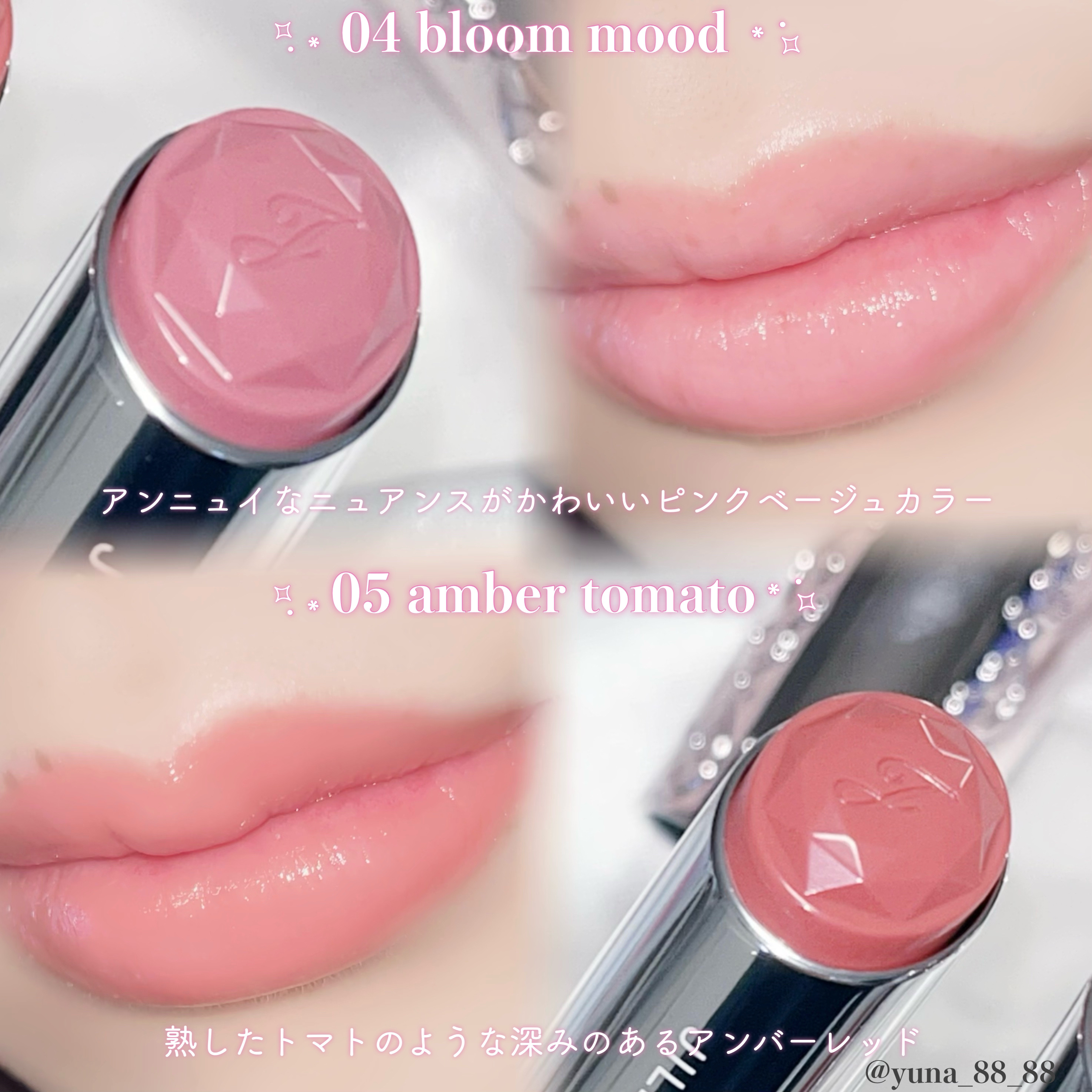 体温でとろけるブルームモイスチャライジングオイルや密着感の高いペーストオイルを配合しているのだとか。バームらしくなめらかで柔らかさのあるテクスチャーでした💄 クリスタルフローラルブーケの香りで、パケもJILLSTUARTらしい可憐さ。もちろんキャップ上部にはミラーもついているのでお直しにも使いやすいです。 素の唇でもほんのり色づきますが、ツヤと透明感のある色味ということもあり(メイクアップ効果)、私はどちらも使いやすく感じました。