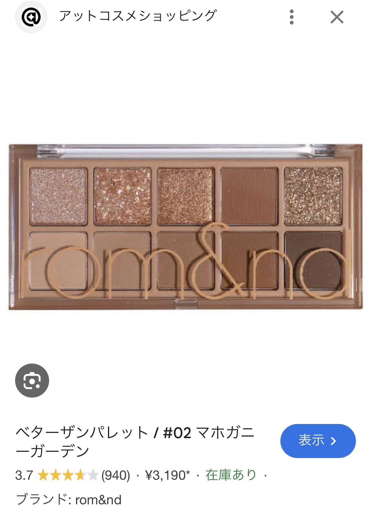 rom&nd ベターザンパレット | 3,190円 |