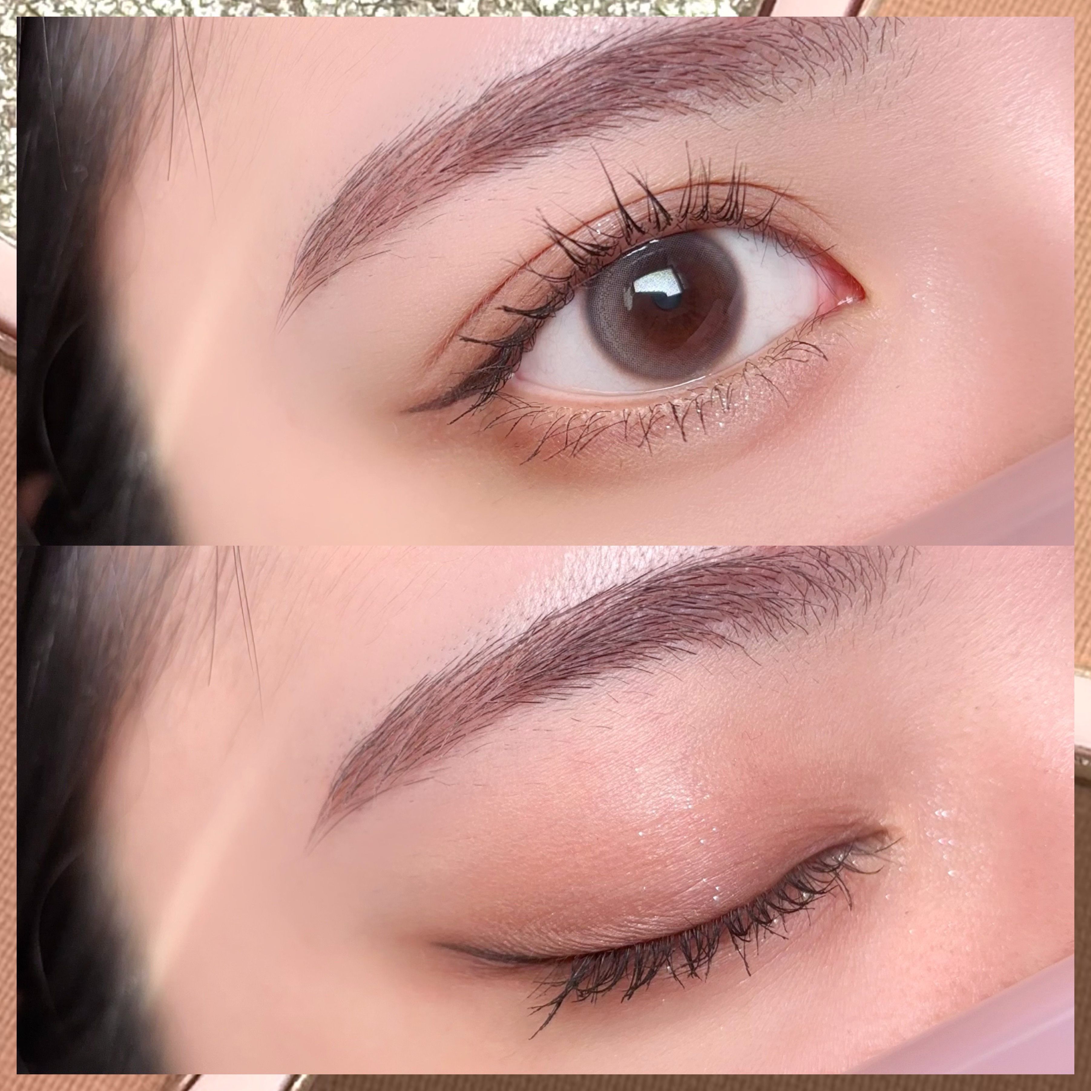 このアイシャドウめちゃくちゃかわいくて、発色も優しめなので色素薄い系メイクにぴったり! ラメが特にかわいい♡ カラコンは透明感のあるグレーで、これもめっちゃかわいい! サイズは裸眼とほぼ同じくらいです! アイメイクに合わせて、マスカラとアイラインも薄めのブラウンでまとめてみました😉