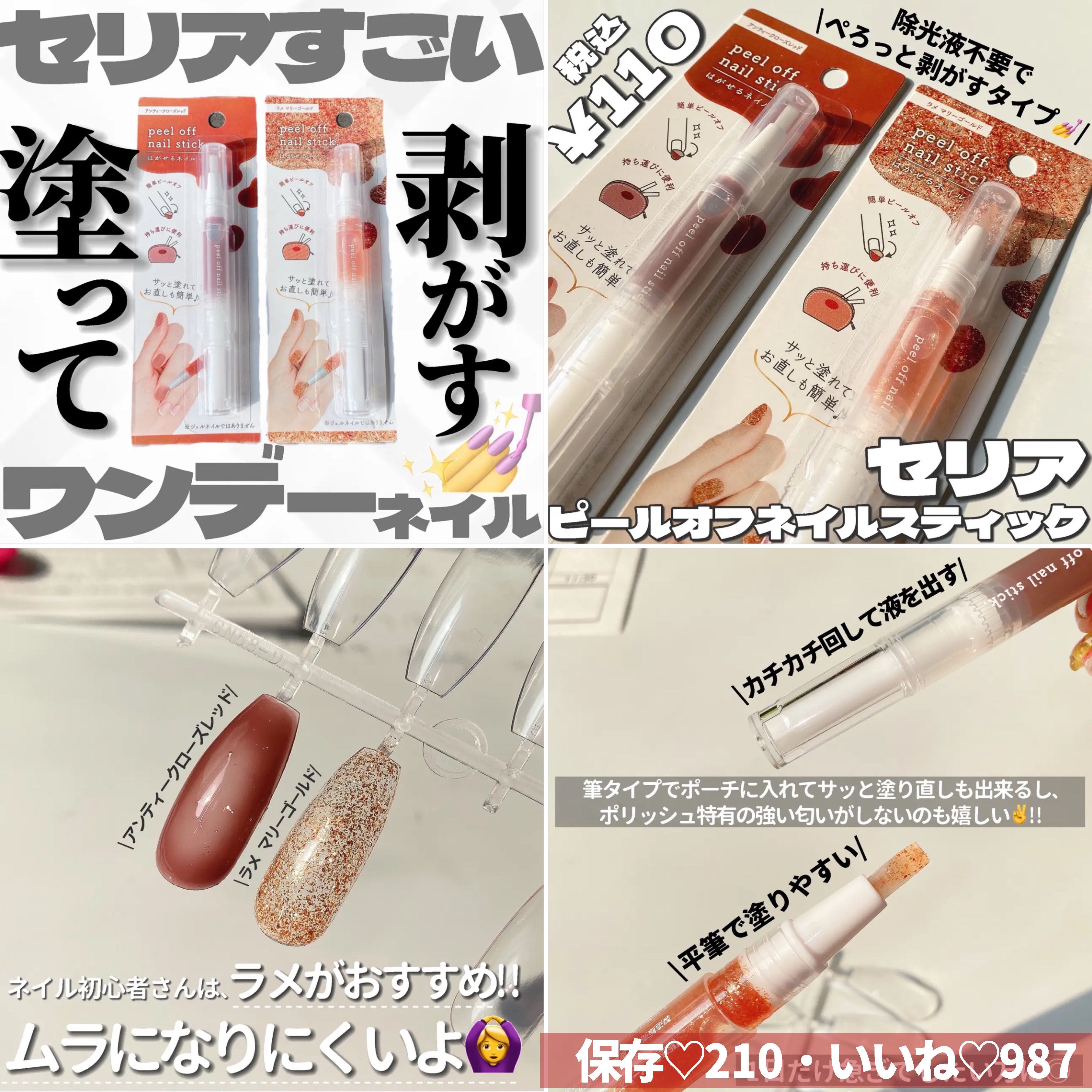 | ネイルランキング第134位 | これが108円とはすごい!種類も豊富でシーズン物も発売される♪とても便利なアイテム! | 詳細を見る | |