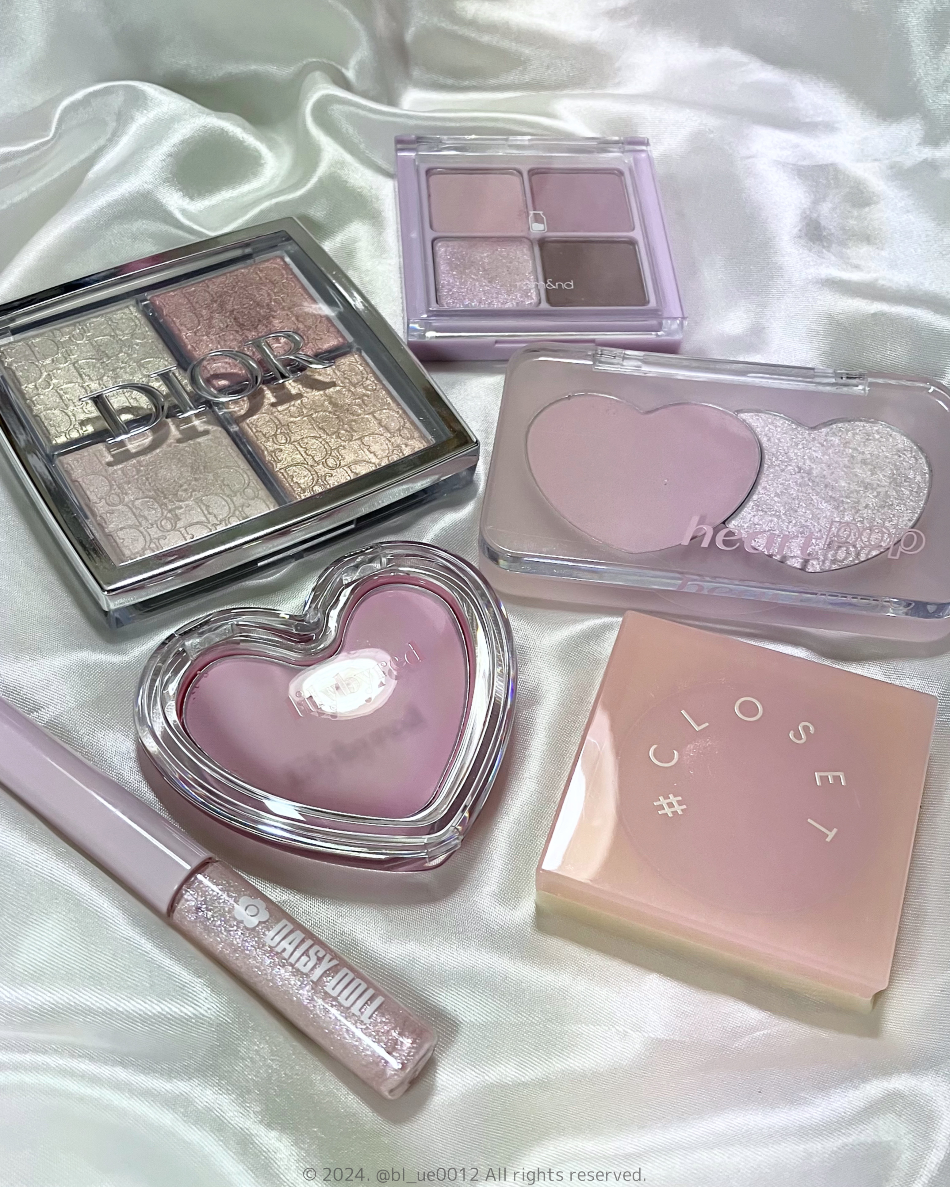 白みをたっぷり含んだカラーがかわいい💜 03 ラベンダープレジャー🫧 上段中央のシマーなラベンダービームのハイライトカラーがとても綺麗だった🥹🤍 トーンを合わせたカラー構成で異なる質感を楽しめるそんなパレットになっています💗