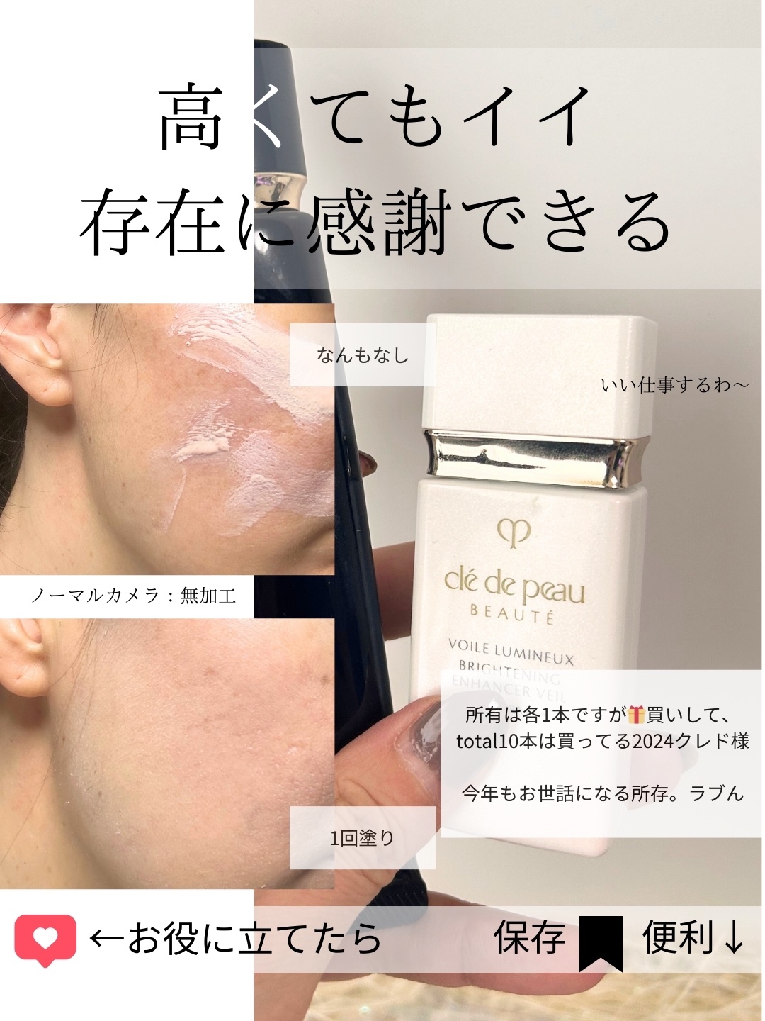 美白有効成分4MSK配合の化粧下地化粧下地です。自然なトーンアップが綺麗なので重宝しております。 下地なのに美白有効成分が入ってるのが画期的すぎてクレドから新作として出た瞬間買いました。 ヴォワールコレクチュールも愛用品ですが手が伸びやすいのはこちらかもしれない。
