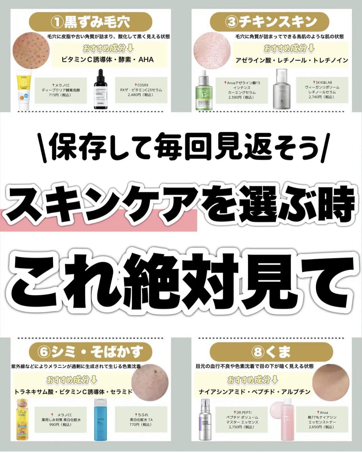 肌トラブルだけではなく、原因やおすすめの成分も細かく書いてあって凄くわかりやすいです✨