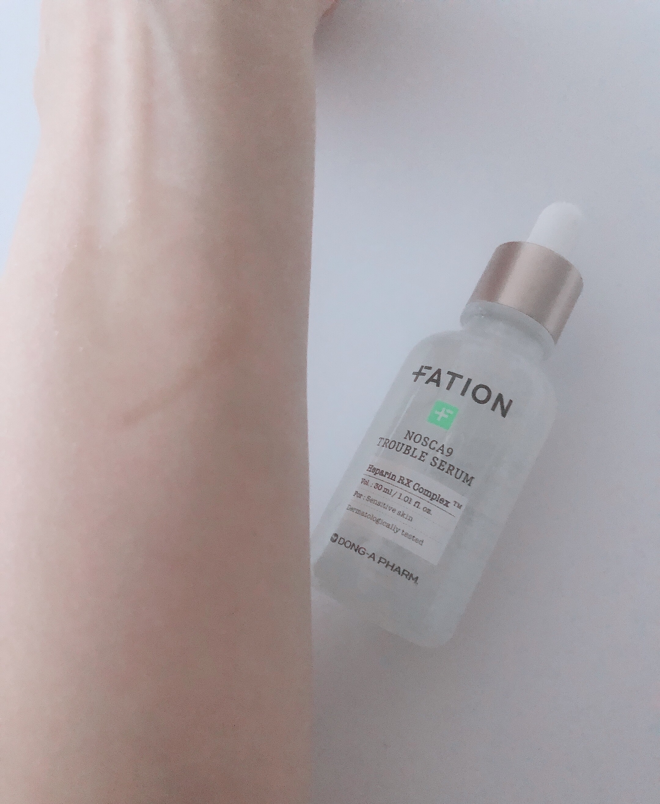 90年を超える韓国TOPの製薬会社【東亜製薬】で9年間研究開発して作られたFATIONのノスカナインライン 肌荒れや外部刺激で赤くなった肌の鎮静など、繰り返す肌トラブルにおすすめのセラムとクリーム♪ 9年間研究した、東亜製薬の特許うるおい成分46%配合✨ ほんのりとろみがあってスーッと肌になじむテクスチャー。