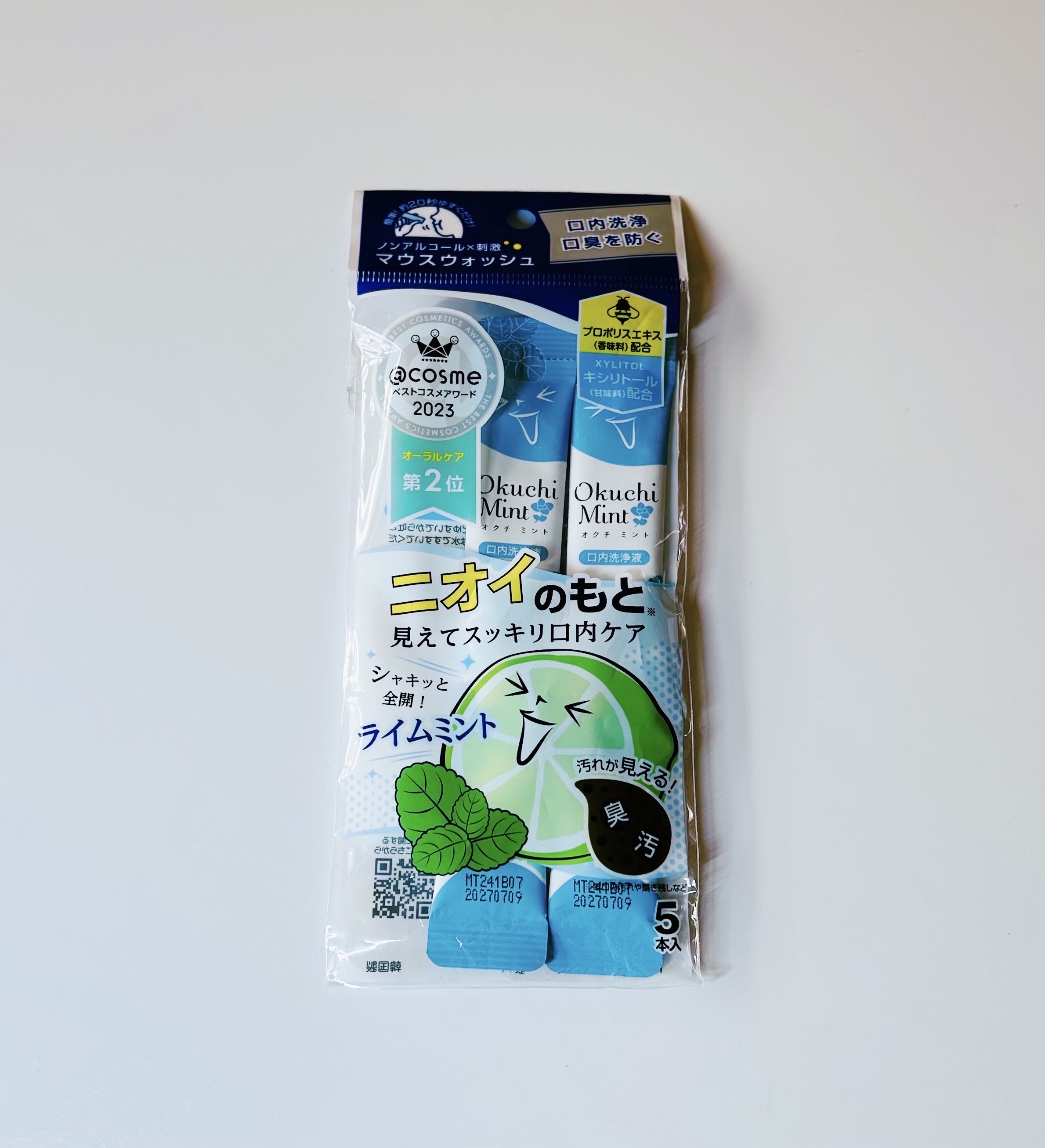 選べる福袋で、お店にあった全種類のオクチシリーズを購入🛒 1袋分264円×5袋1320円が1050円❣️ サンプルも付けてくれました 口の中の汚れ、磨き残しを除去し、口臭の原因の一つであるタンパク質を固めて洗い流す口内洗浄液です。 キュンと甘酸っぱいチェリー🍒 ノンアルコール・低刺激