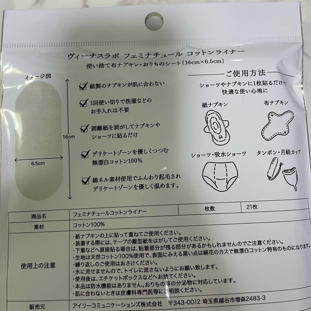 商品詳細情報ヴィーナスラボ フェミナチュールコットンライナー