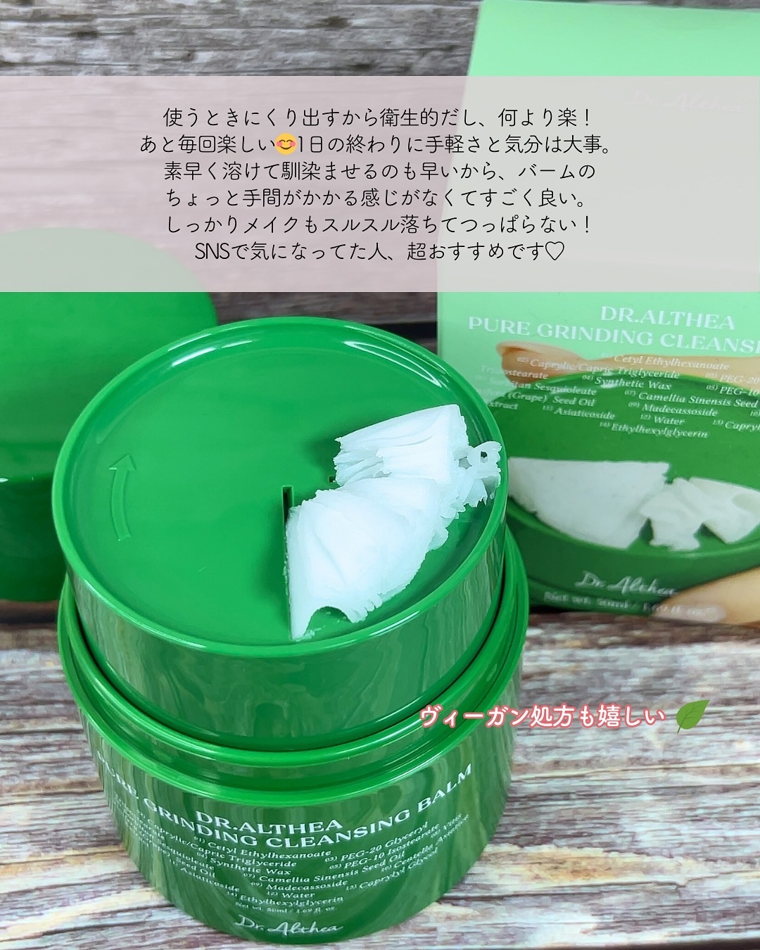 新感覚次世代クレンジングバーム⭐️ Dr.Althea @dr.althea_japan_official ピュアグラインディングクレンジングバーム 削って出すバームなんて斬新すぎて.ᐟ.ᐟ 容器をくるくる〜ってすると削れたバームが出てくるんだけど量も調整しやすいし シカ&マデカソサイド成分で抗炎症作用で鎮静ケアにも良いし 緑茶種子オイル&ブドウ種子オイルがつっぱり感なくしっとり洗えるよ︎👍🏻 ̖́-