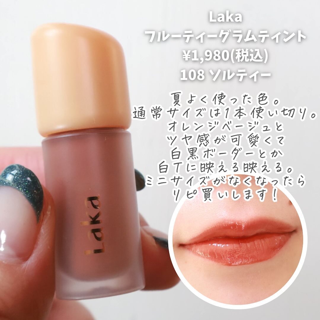 発色、色持ち、保湿、言う事なし お値段以上のクオリティで何度使っても感動するリップ💕 03 陽炎淡い炎のようにゆらめくロゼベージュ 04 パンプキンワイン煮詰めたカボチャとワインの深みを感じるテラコッタブラウン 私はよくリプモンの上にLakaのフルーティーグラムティント重ねて使ったりします💄🍂