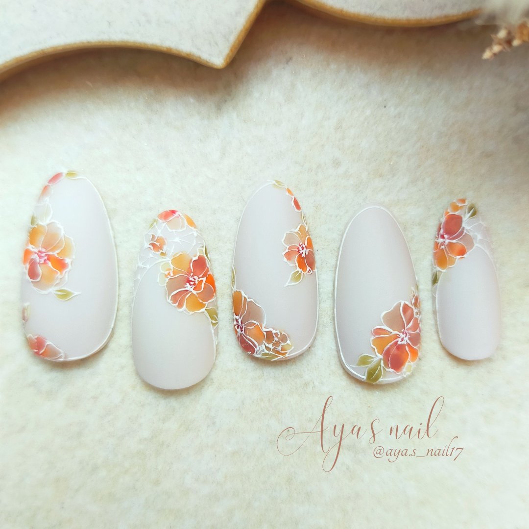 ✾ClassicalFlower ✾#PR#ARKEYTOKYO🗼slimovalとshortangularそれぞれで描いたお花を組み合わせたフラワーデザイン💅色付けはアースクリアのamberとcanyon💛🧡シンプルですが、とても上品...