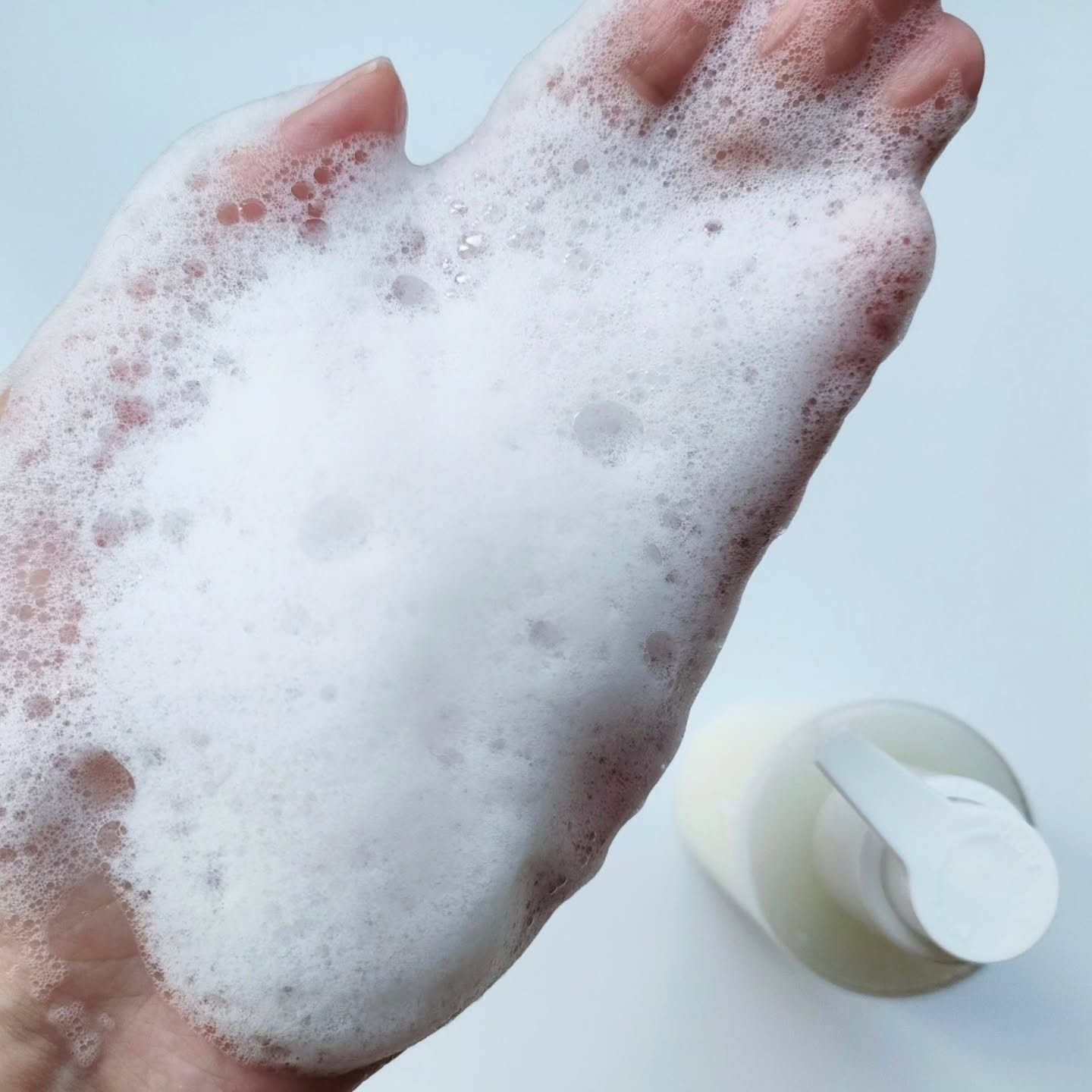 天然由来のビーガン成分:AHA、POREAWAYコンプレックス、ゴールデンホホバシードオイル、天然界面活性剤を含み、肌を柔らかくしっとり保ってくれる。 オイルが入っているのに、優しいまろやかな泡になるのが不思議✨ しっかり毛穴の汚れも落としてくれるのに、つっぱり感がないところがお気に入り😉💓