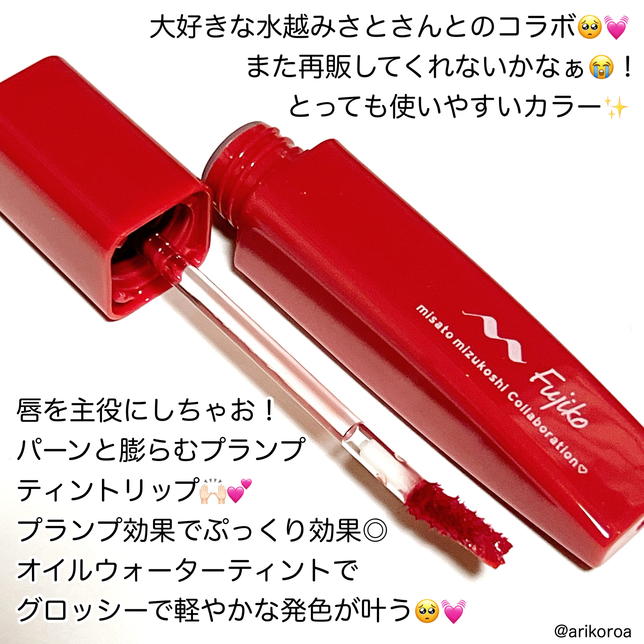 - フジコの新リップは、重ねるほどにパーンと膨んでみえるプランプティント*1。 ぷっくりと存在感のあるリップメイクで唇を主役に。 <プランプ成分(清涼成分)> "メントキシプロパンジオール”採用。 血色感、ボリューム感、クーリング感を演出します。 <オイルウォーターティント処方> 軽やかなオイルが唇に均一に伸び広がり、 FIXING。 時間が経ってもボリューム感と光沢感を演出。 しかもティントだから“落ちにくい”(*2)。 <5種の美容保湿成分配合> アルガンオイル・ツバキ種子油・アーモンド油 ティーツリー葉油・ハチミツエキス *1全てメイクアップ効果 *2効果・効能には個人差があります。