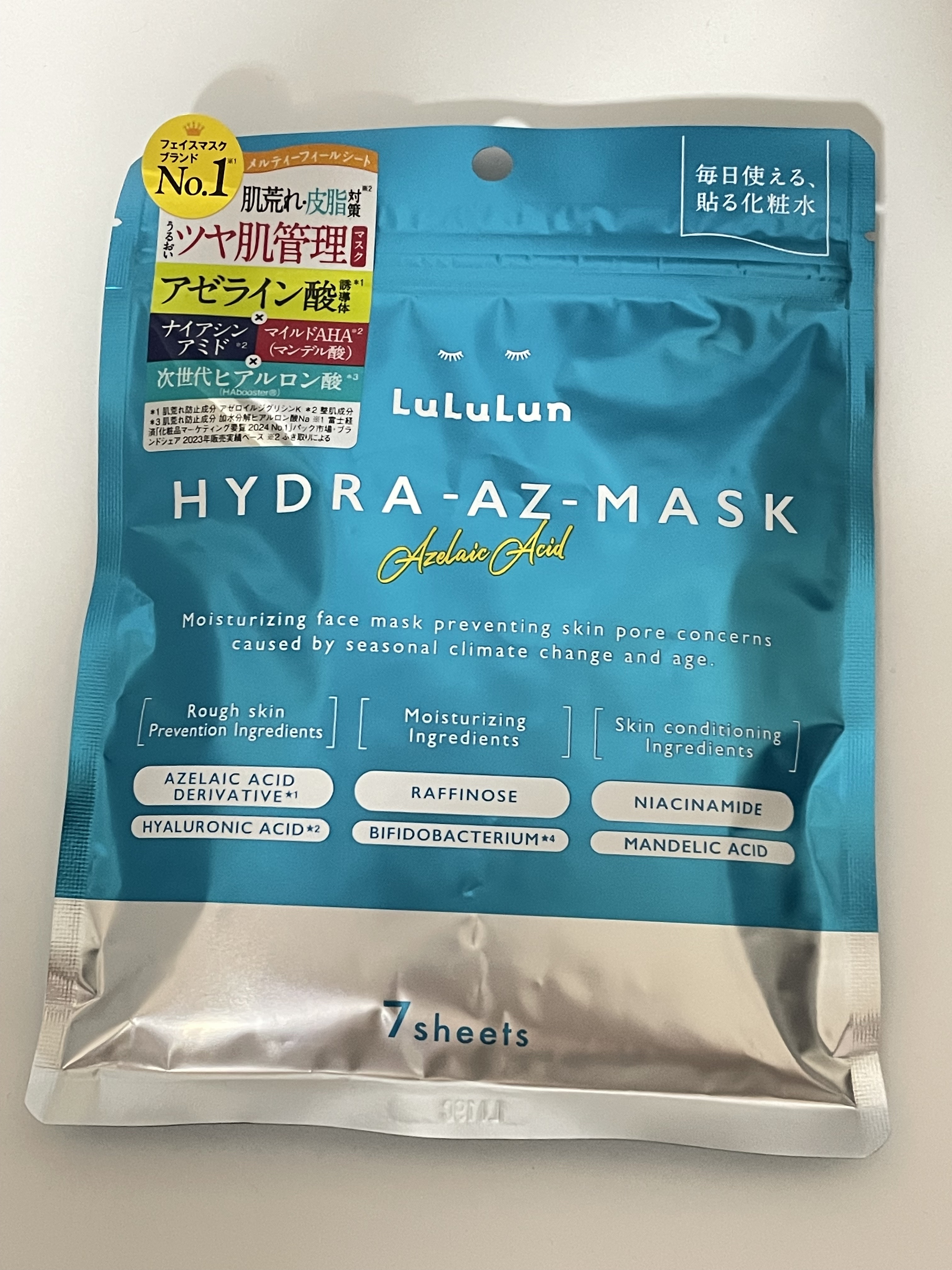 - 肌荒れ・皮脂ケア※1と健やかな肌の土台※2美容を叶える、アゼライン酸誘導体*1配合のうるおいツヤ肌管理マスクです。 肌荒れや肌の赤み、毛穴目立ちが気になる方に。 アゼライン酸*1×ナイアシンアミド*2+次世代ヒアルロン酸*3配合で、肌荒れをケアし、角質層をみずみずしいうるおいで満たします。 さらに肌表面でゆっくりと働くマイルドAHA*4が、古い角質をやわらげ、キメを整えることで、つるんとツヤめく素肌へ導きます。 シートはとろけるように肌に密着するメルティーフィールシートを採用。 シートが最も柔らかく感じられる液量を研究し、まるで水の層に包まれているような心地よさを実現しています。 (※1 ふき取りによる ※2 角質層のこと *1 肌荒れ防止成分 アゼロイルジグリシンK *2 整肌成分 *3 肌荒れ防止成分 加水分解ヒアルロン酸Na *4 整肌成分 マンデル酸)