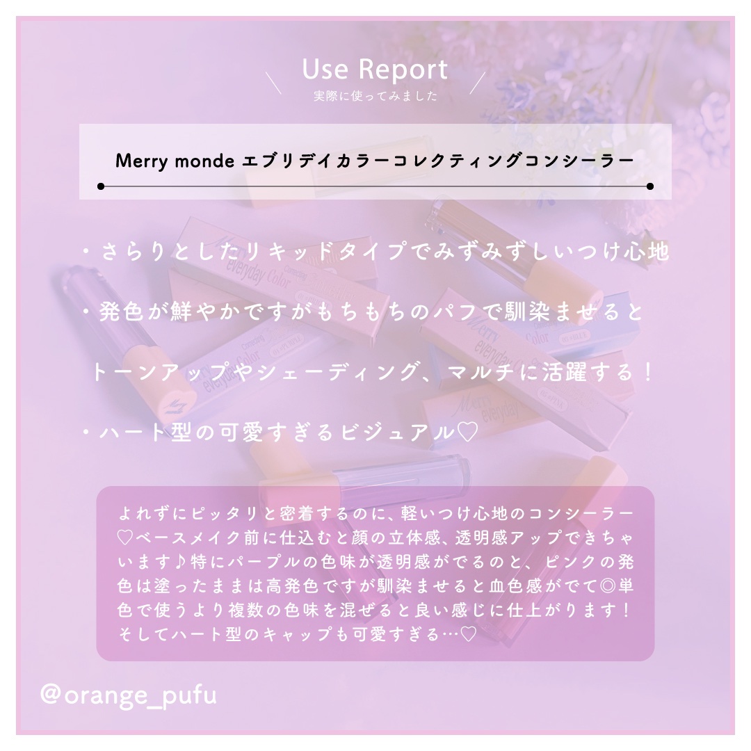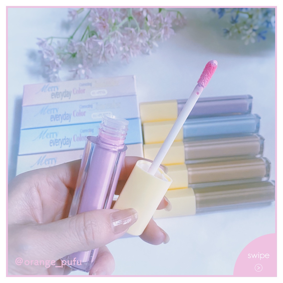 Merry mondeから6種類の豊富なカラーで見た目も可愛いコンシーラーでた🤍 顔の形や顔タイプに合わせてカスタマイズ!トーン補正、カバー、シェーディング、チークまで使えてベースメイクが一気に完成! リキッドタイプでさっと塗ってハートパフでポンポン叩けばベースメイクが完成して楽しみながらメイクができて大好き︎🫶🏻