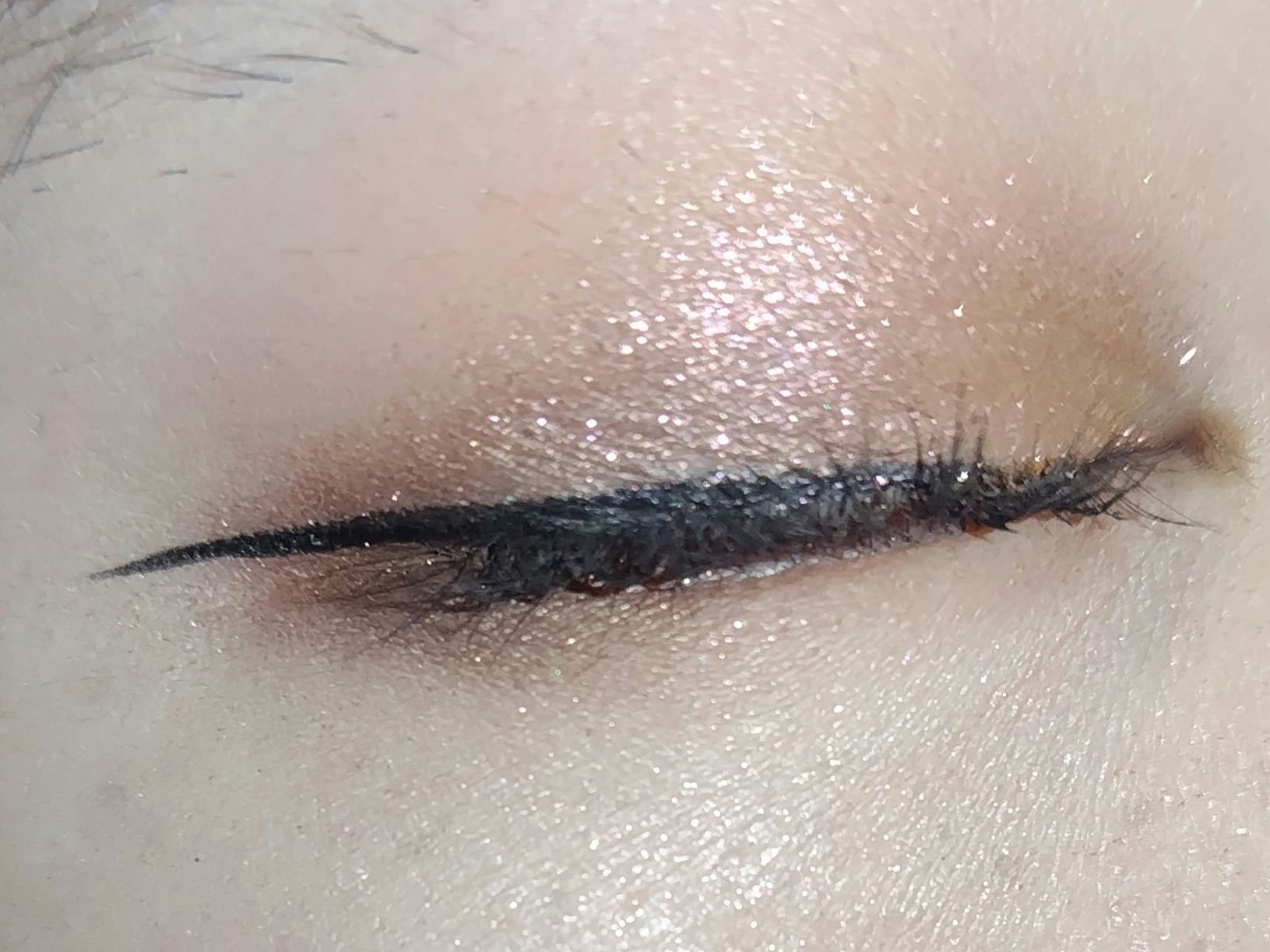 青緑ラメが主役のブラウンメイク✨ アイシャドウの使用アイテムは、スモール アイシャドウ【スターリー ナイト】、プロ ロングウェア ペイント ポット【ブージー】、ダズルシャドウ リキッド【オー スピシャス】 ダズルシャドウ リキッドのオー スピシャスは2025年のニューイヤー限定蛇パケの子🐍❤️ これも少し青緑系のラメで偏光みのあるホワイトアイシャドウ✨ ラスターガラスのシアーな質感とダークブラウンの組み合わせでめちゃくちゃ可愛い😍😍 ダークリップなのに、透け感があるというか🥰