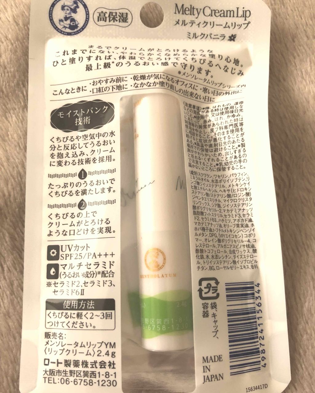 - くちびるや空気中の水分と反応してうるおいを抱え込み、クリームに変わる「モイストバンク技術」を採用。まるでクリームがとろけるような、これまでにない、やわらかくなめらかな塗り心地。ひと塗りすれば、体温でとろけてくちびるへなじみ、最上級*のうるおい感で守ります。 UVカット(SPF25/PA+++)。マルチセラミド(うるおい成分)※配合。*:メンソレータムリップシリーズ内※:セラミド3、セラミド2、セラミド6II