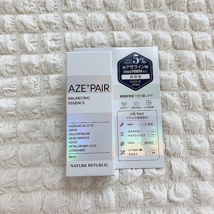 韓国コスメで有名なネイチャーリパブリックが初の「MADE IN JAPAN」を開発 最近話題の成分「純アゼライン酸」肌を整える成分として最近話題の成分 今回純度99%のアゼライン酸を核にアゼライン酸と相性がいい美容成分をたっぷり配合🌟