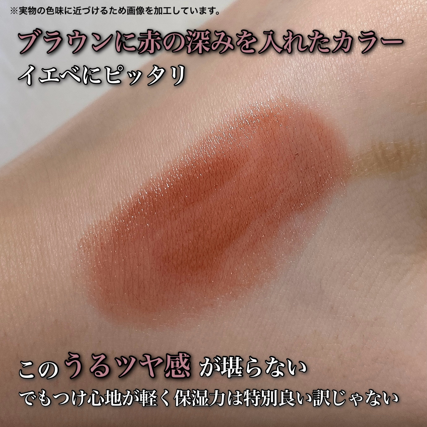 パケが可愛い カラーが豊富 ナチュラルな色味 肌なじみの良い色味 着け心地がめっちゃ軽い 刺激への耐久性がある 手で付けないと上手くつけれない 縦じわが目立つ 唇が乾燥していると色が乗りにくい