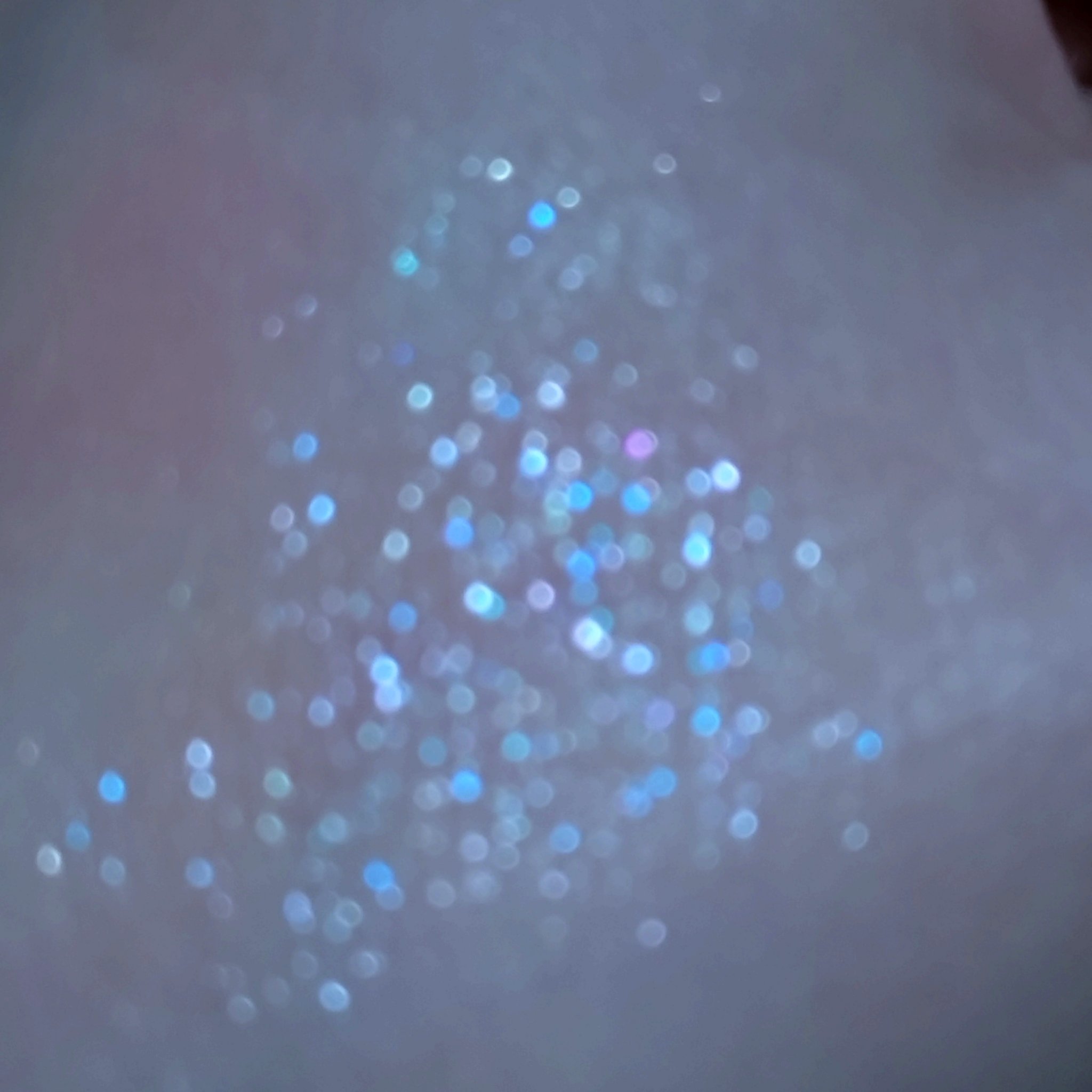 大粒のシルバーとブルーのラメがたっぷりのキラキラのハイライト。粉飛びしにくくピタッと密着し、存在感のある華やかな印象に アイシャドウの上にトッピングしたり、涙袋メイクにもおすすめ! ブルベ冬にイチオシ❄️