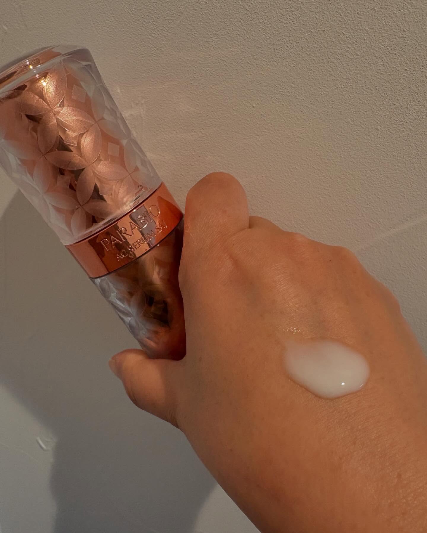 ヤクルト ビューティエンス最高峰のシリーズ「パラビオ」の美容液。エイジングサインに幅広くアプローチしてくれるんだそう。 ピンクゴールドのボトルが華やか。伝統の吉祥文様「七宝つなぎ」をあしらった、和を感じるボトルが素敵! するするなじみ、ベタつきが気にならないので、メイク前にも使いやすい。特に乾燥が気になる部分には重ね付けすると◎
