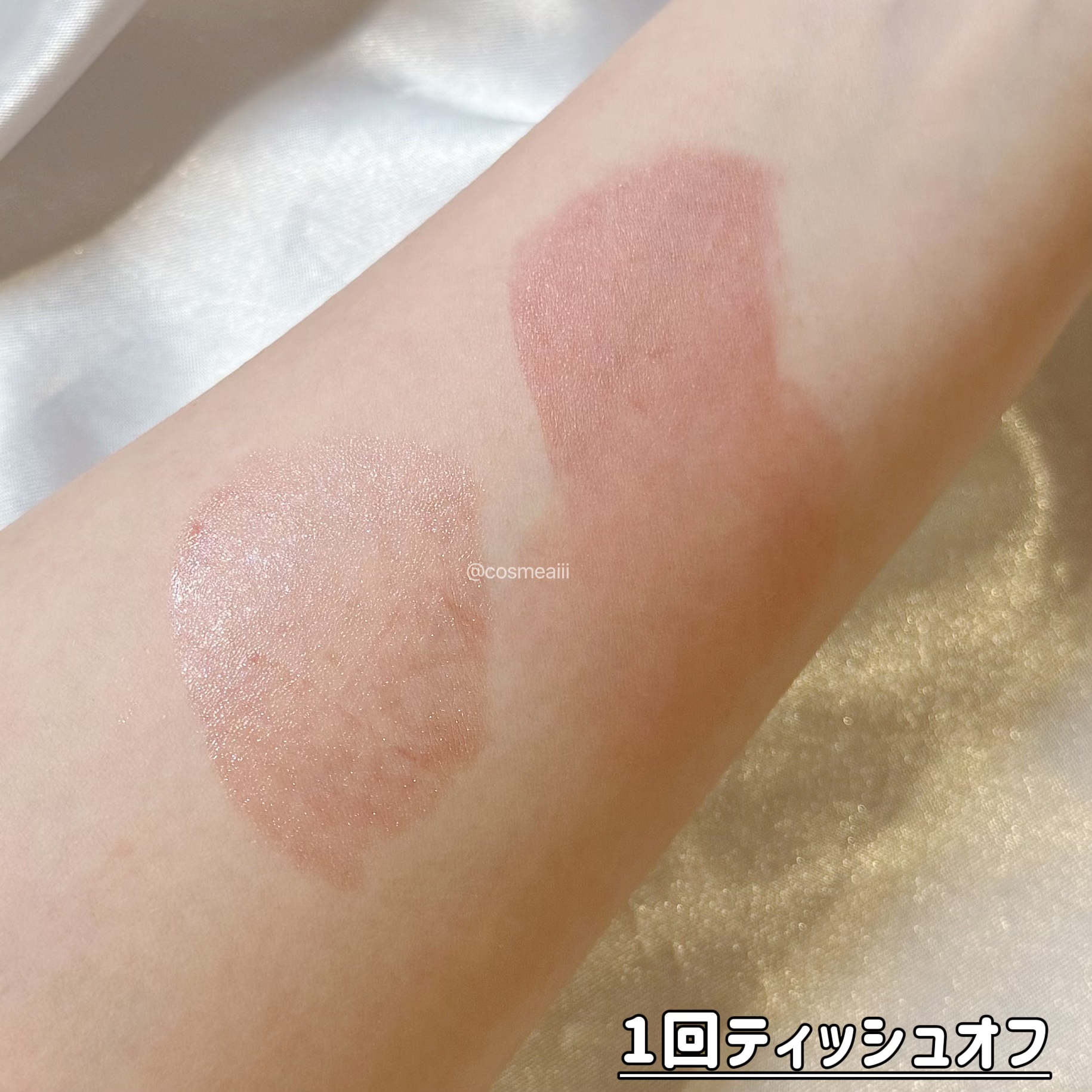 今までみんなご存知のジューシーラスティングティントも愛用してますが 自分的にはかなり高級感がアップした↑ 実物みて感動するぐらいめっちゃ好きなパケ😭🌷 名前通りピーチカラーでイエベさん絶対買って欲しいかわいい色です❤️ イエベさんでも簡単に使えるローズカラーで デートにおすすめなお色です◎ オレンジブラウンカラーで 塗ったら一気にオシャレになれるし秋にぴったりなカラーです🍁 正直。既存のジューシーラスティングティントと似てるような質感ですが くちびるに塗ると新作のほうが若干塗りやすくなった気がします 色持ちは相変わらずめっちゃ良いです◎ 画像の7枚目からはスウォッチ、参考になればと思います。 ティッシュで擦っても色はちゃんと残ってる 既存のティントリップは甘いキャンディな匂いがしたが、 今回の新作は少し匂いもしますが、嫌な甘い匂いではない。 匂い人それぞれ感覚違うですけど、個人的には結構大丈夫だし、むしろ前の商品より好き♡