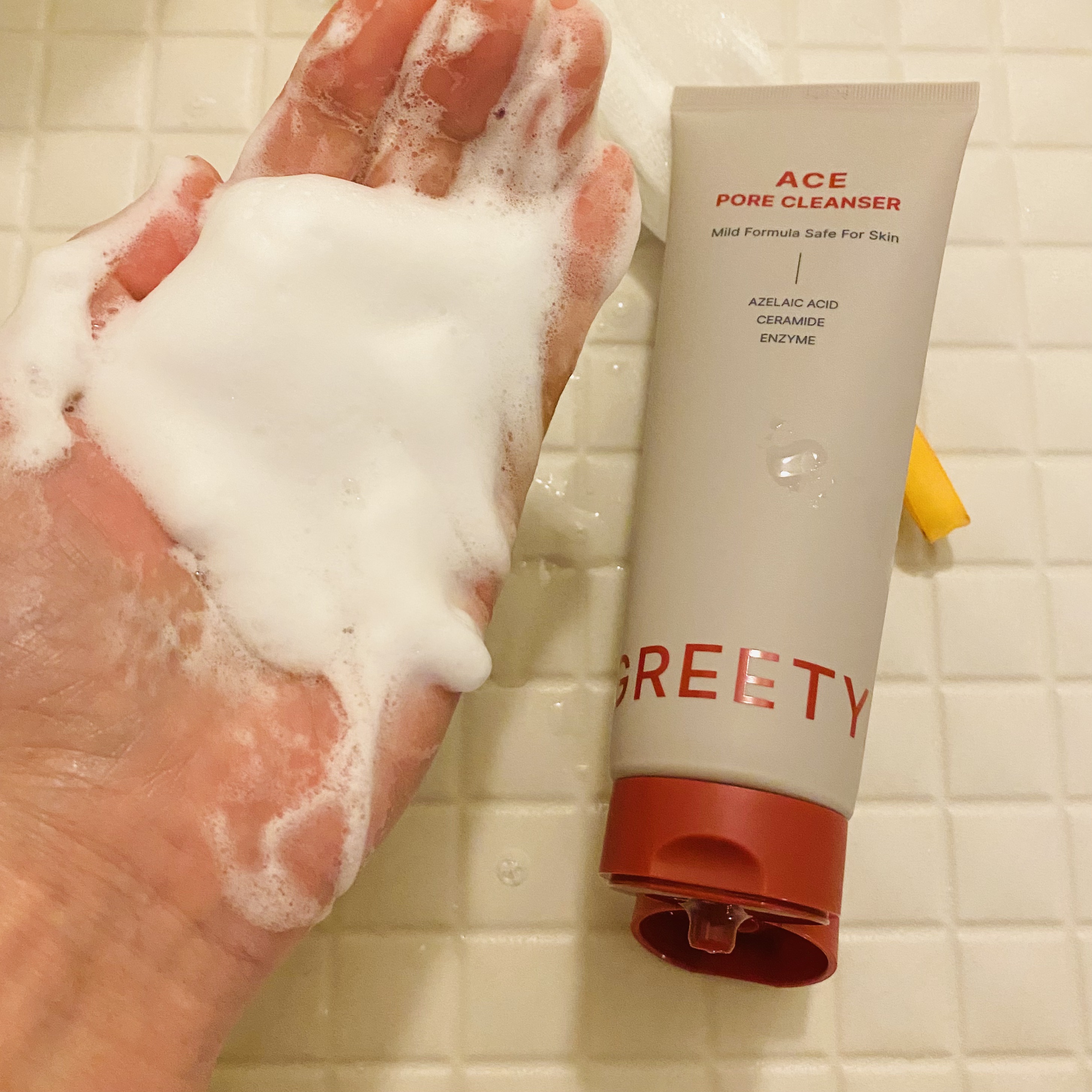 アゼライン酸で毛穴をキュッと引き締める GREETY.のエースポアクレンザー🕊️ 肌トラブルをマルチにケアする成分”アゼライン酸”配合の洗顔料です。 洗顔、ボディーソープ、バブルパックといろいろな使用方法ができる万能クレンザー!