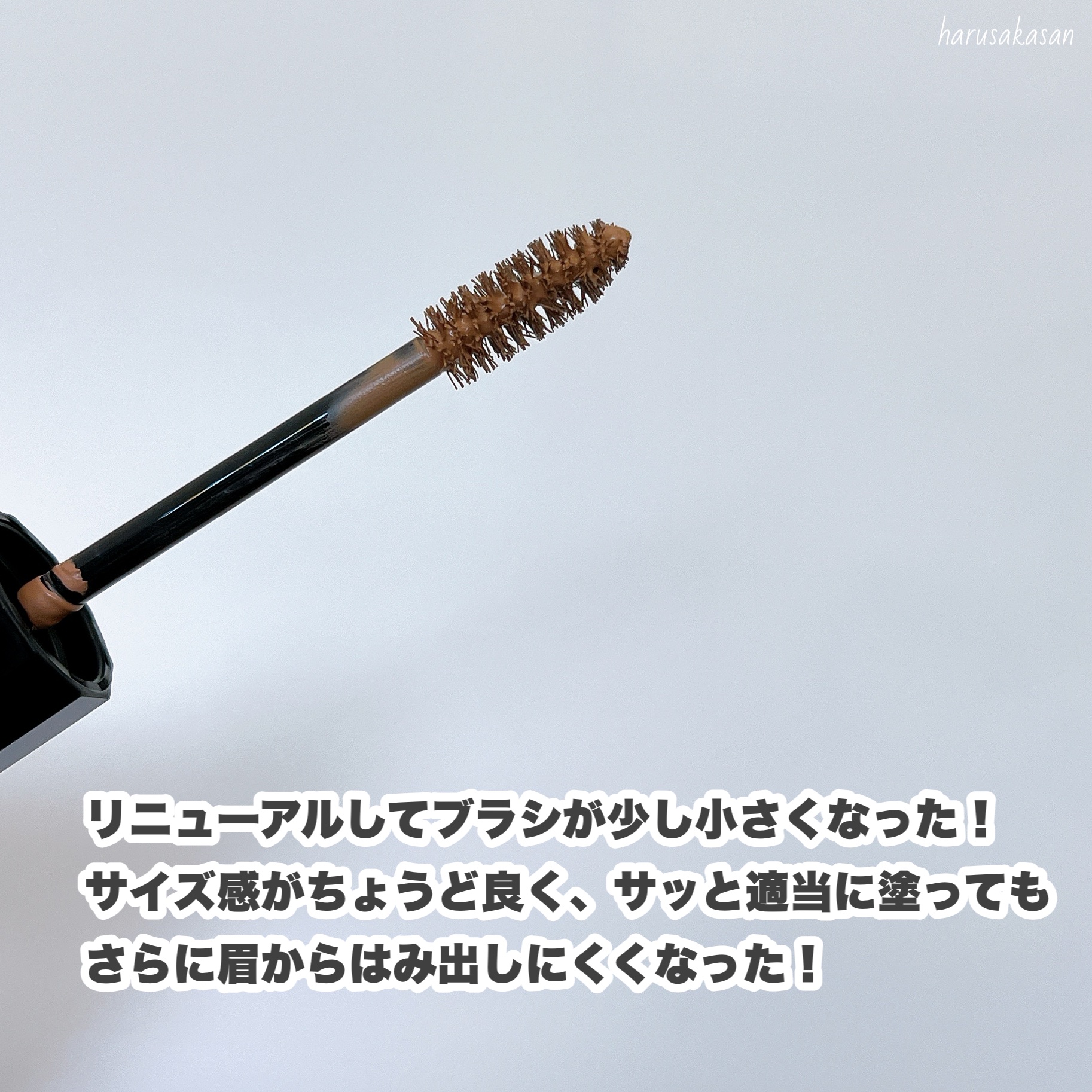 - なりたい印象に合わせて眉カラーリング。塗るだけ簡単!薄膜で自眉級ふんわり眉。 ■自眉のようにふんわり自然な仕上がり 薄膜フィルム処方を採用。塗布後に固まらず、自社従来品と比較して自眉のようにふんわりと仕上がります。 ■ひと塗りで美しい発色 眉毛1本1本を隠蔽し、ひと塗りで美しい発色に。自社従来品よりも発色がUPし、黒眉を残さずきれいな仕上がりを叶えます。 ■地肌にベタっとつきにくいコンパクトブラシ 自社従来品と比較して、ブラシ部分は短く、軸は長いコンパクトブラシを採用。 コントロールしやすく地肌につきにくいため、まゆ毛だけを1本1本塗りやすい! ■長時間落ちにくいのに、お湯で簡単オフ 汗・水・皮脂・こすれに強く、長時間落ちにくいマルチプルーフ処方です。 フィルムタイプなので、ぬるま湯でスルッと簡単に落とせます。 ■美容液成分パンテノール(眉毛保護成分)配合 パンテノール(眉毛保護成分)が眉毛をやさしい使い心地でケアし、眉毛にツヤ・ハリを与えます。