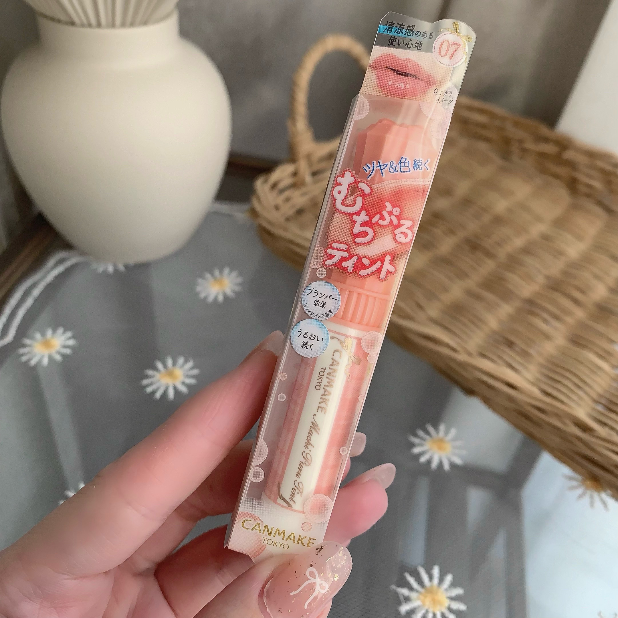 イオン先行販売✨キャンメイク むちぷるティントの新色。 07フルーツオレ 気になってたので購入しました😺 770円で買えるのさすがCANMAKEというかんじです。プランパー効果ついてるし素晴らしい👏 白みオレンジのようなカラーなのでイエベ春さんにおすすめです😺 多幸感演出できそう☺️