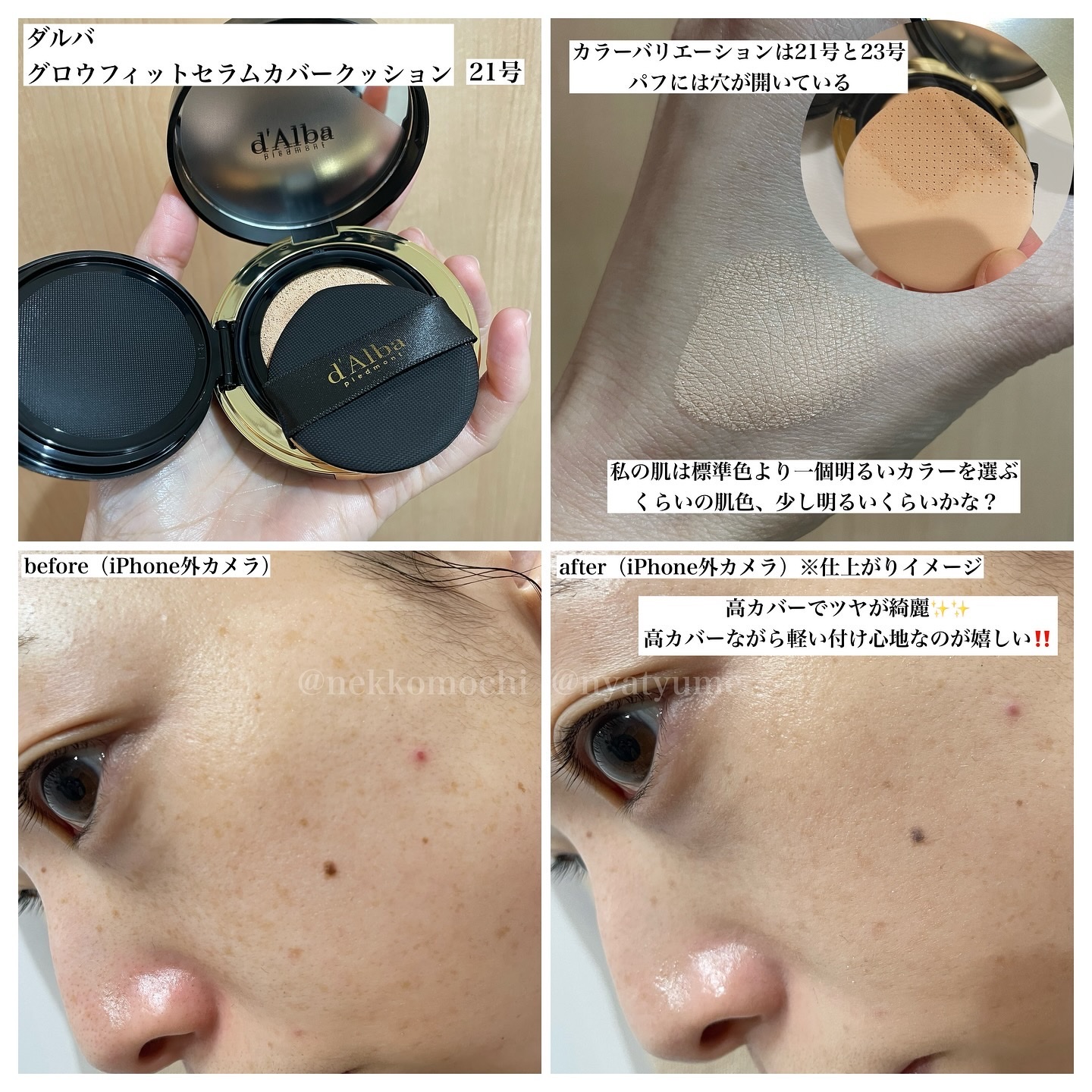 艶がやっぱりすごかった...🥺‼️ 「CAミスト」として名高いダルバからでたクッションファンデーションです 61%の水分エッセンスを配合していて、しっとりと肌に密着し自然な輝きと滑らかな肌を演出してくれます シワ対策やたるみ対策にも有効な成分が入っているそう✨ アンチエイジング効果もあるベースメイクを探している方におすすめです♡