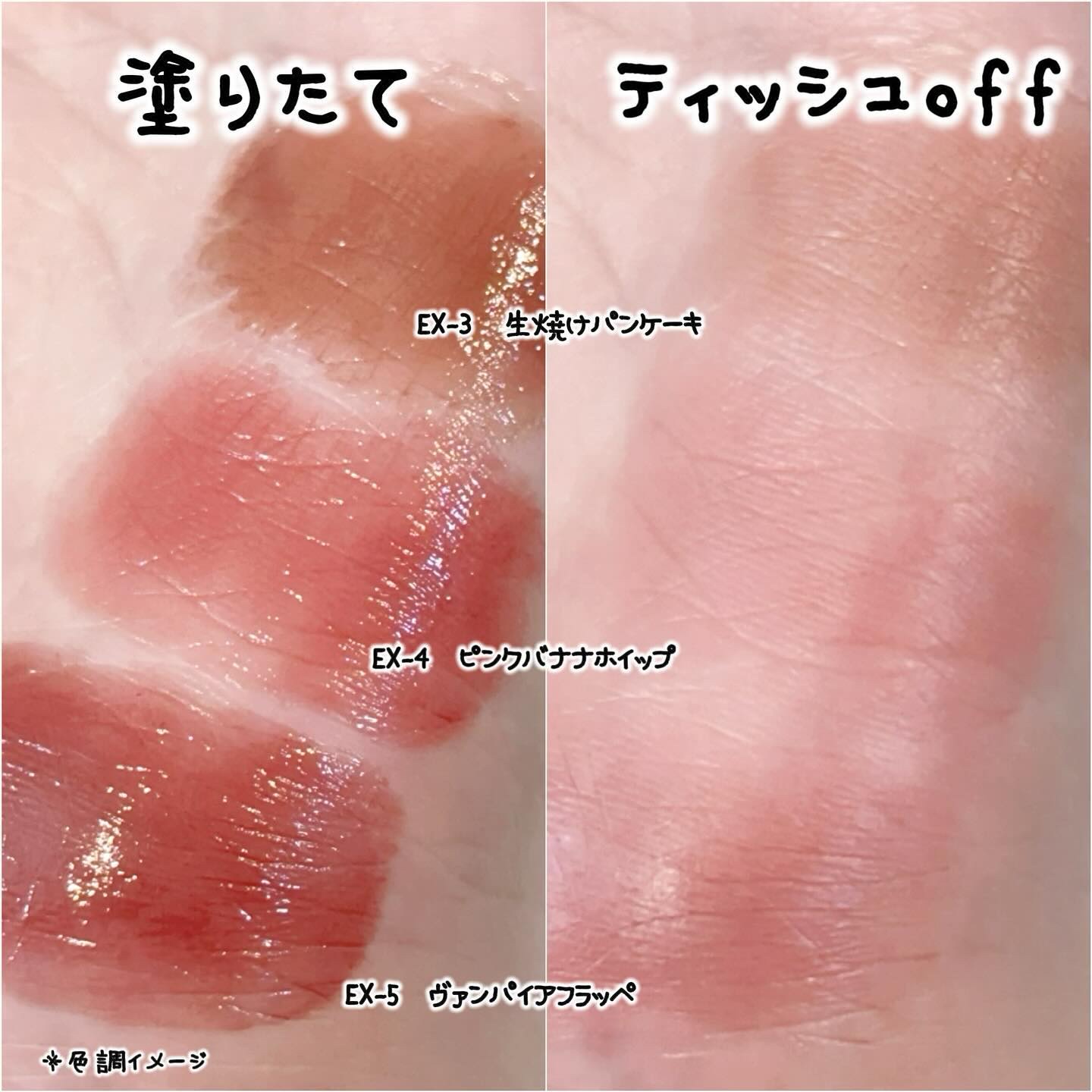 盛れるベージュ系カラー3色が限定色で登場! その名もクリーミーモンスター! ✔︎[ EX-3 生焼けパンケーキ:クリーミーベージュ系 ] ヌーディーなオレンジベージュ系。 なじみがいい色で落ち着きメイクに。 ✔︎[ EX-4 ピンクバナナホイップ:クリーミーピンク系 ] 落ち着いた粘膜ベージュピンク。 ピンクだけどかわいすぎないところがいい…!