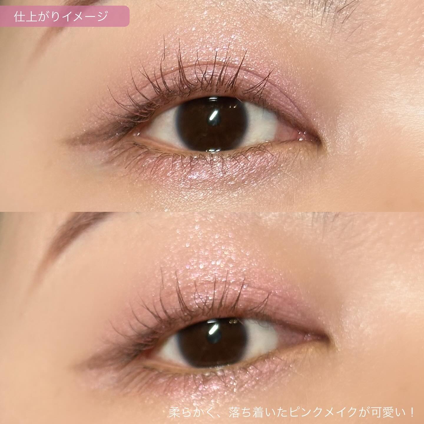 このパレットは、黄味が少なめでブルベにも使いやすいブラウン。 発色はしっかり目だけど、ブラシで調節も可能なので幅広い人に使いやすいパレットだと思います🎀✨ ラメ感も少しずつ異なり、華やかさを抑えたい時は右上を多めに使うと品の良いツヤのあるピンクブラウンメイクになります💎✨ 左上のラメカラーは白っぽいのでどんなアイシャドウとも相性抜群! この可愛い色味と煌びやかなラメは唯一無二です!