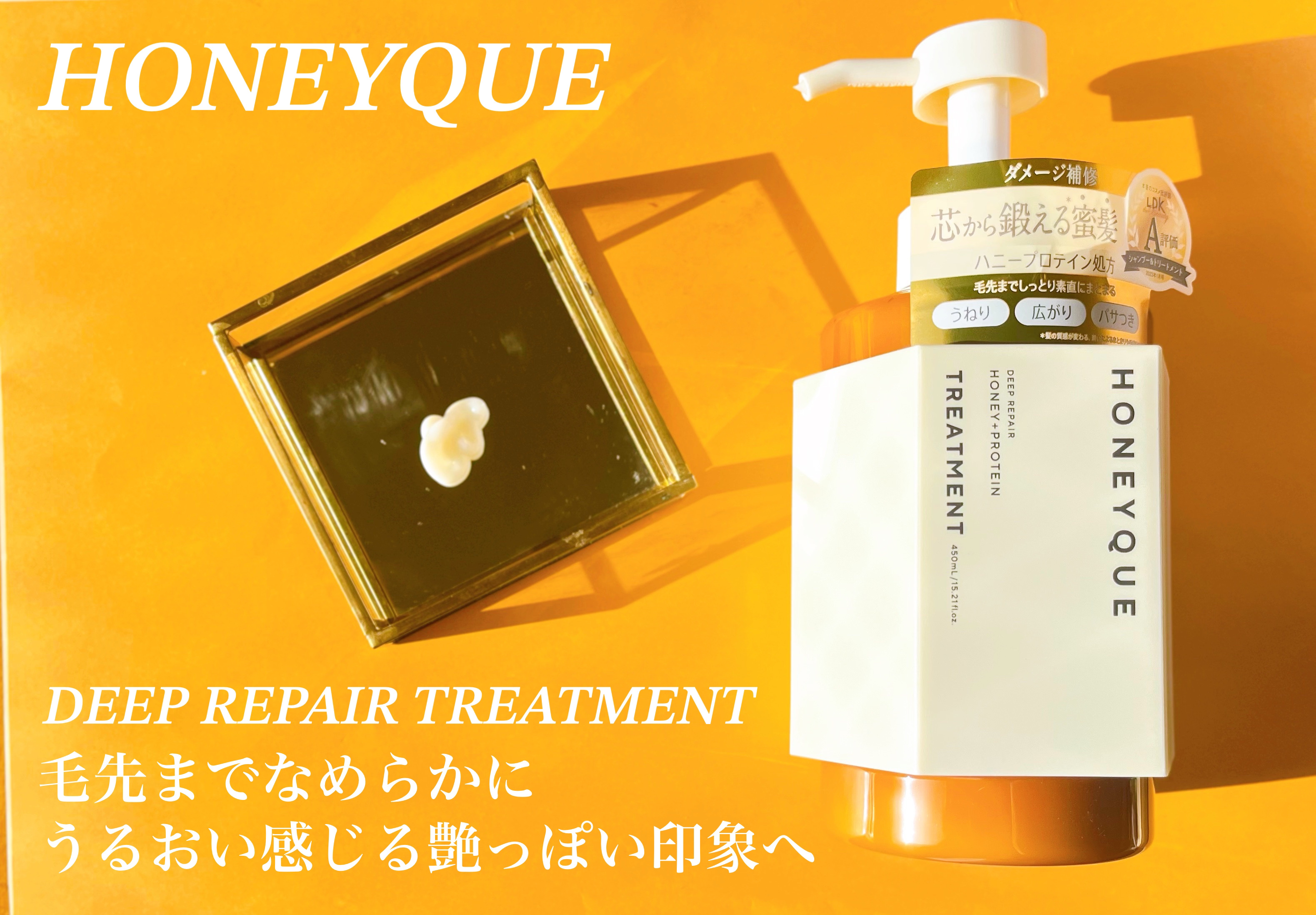 - 毛先まで素直にまとまる蜜髪へと導く「ハニープロテイン処方(保湿)」のシャンプー&トリートメント。 髪内部の保水力をサポートするオーガニックマヌカハニー*1や、髪の芯から集中補修する3種のプロテイン*2など、髪の芯から鍛える*3成分を厳選して配合。 シャンプーは、きめ細かく濃厚な泡立ちで、リッチに潤いながら頭皮の毛穴の汚れをスッキリ落とします。 トリートメントは、髪内部に潤いを届けて水分バランスを整え、ダメージを補修。髪のダメージをトータルケアして、うねり・広がり・パサつきにアプローチ、毛先までしっとりまとめます。 アクアブロッサムハニーの香り *1 ハチミツ(保湿) *2 シャンプー:加水分解乳タンパク、加水分解ダイズタンパク、加水分解ローヤルゼリータンパク/トリートメント:加水分解乳タンパク(牛乳)、ダイズタンパク、加水分解ローヤルゼリータンパク(全て保湿) *3 髪の質感が変わる、潤いによるまとまりや手触りのこと