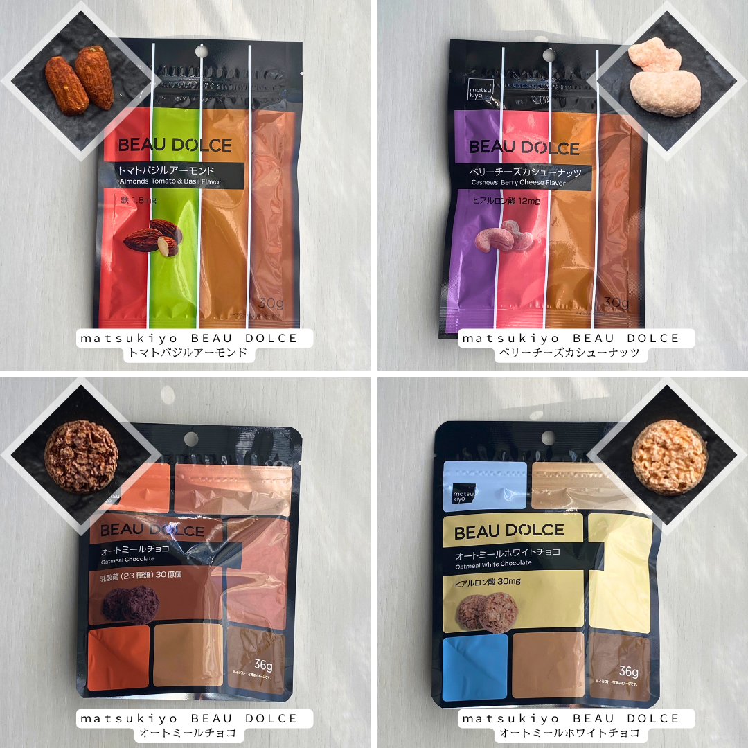 美容サポート成分を配合した、新発想の美容おやつが登場しました!! ヒアルロン酸やGABA、乳酸菌などの美容によいとされる成分を惜しみなく配合した、新発想の「美容おやつ」です。 可愛いパッケージでチャック付き(乳酸菌ビスケットを除く)なので持ち運びしやすく小腹が空いた時などにも食べやすいです。