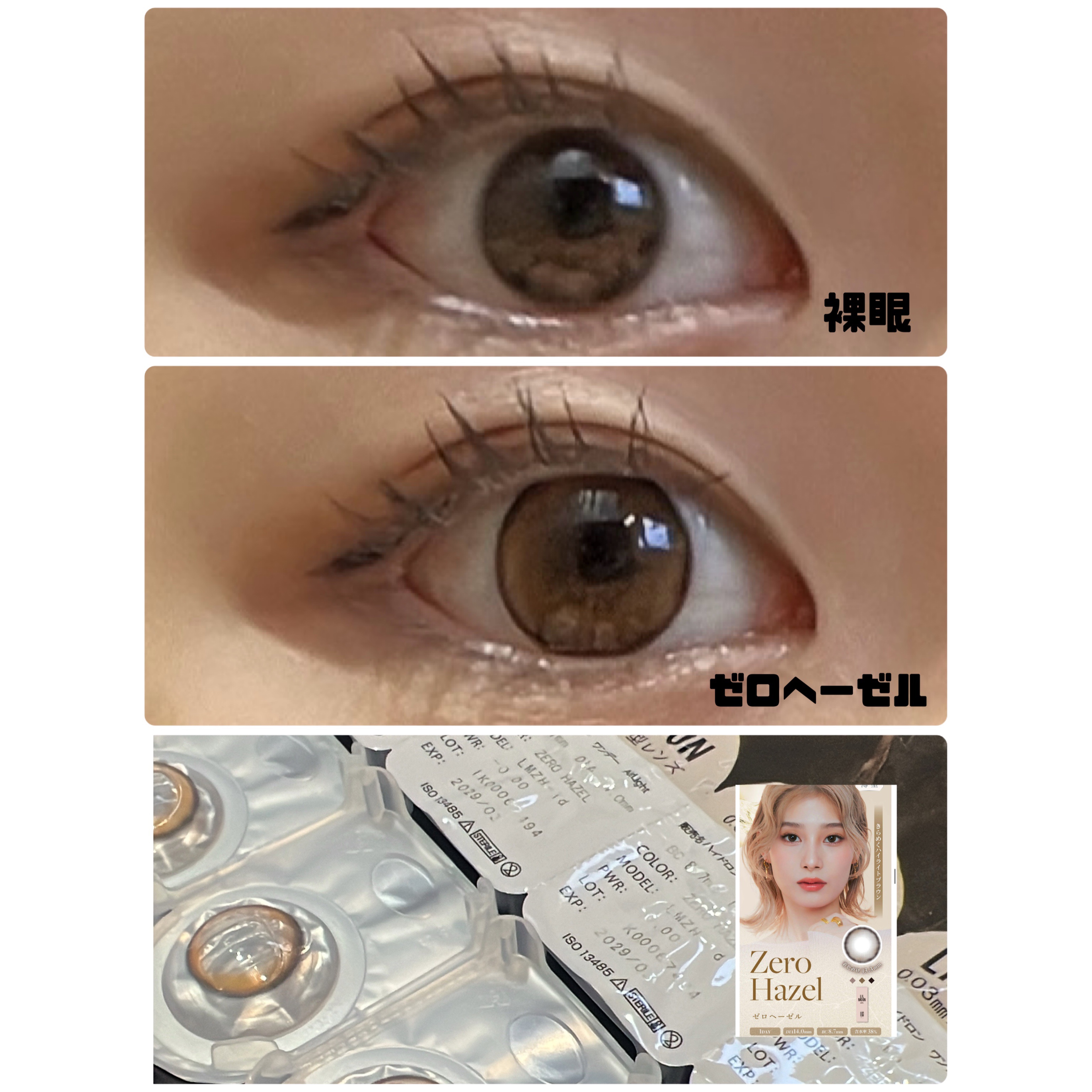 ちゅるんとした仕上がりが可愛すぎるLILMOON 1day 0.03ZERO👀 大きすぎず小さすぎない程よい着色直径と、透明感のある瞳を演出できるレンズデザインが可愛い🥹❤️ 裸眼暗めな私でもしっかり発色良く仕上がって、これはとてつもなく盛れるカラコンだなと思いました◎ 私はジェントルピンクがとくにお気に入り😍