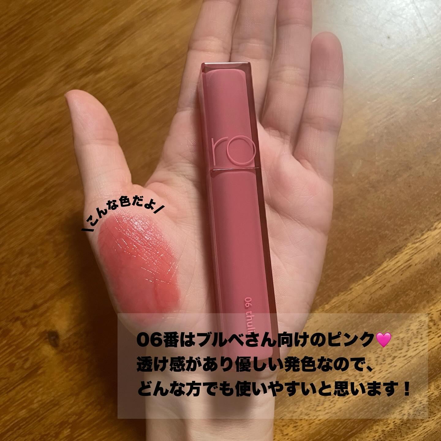 ブルベ夏おすすめカラー🎀 rom&nd ❤︎ ジューシーラスティングティント #06 FIGFIG ¥1,320(税込) デュイフルウォーターティント 06 thulian ¥1,320(税込) グラッシーボムティント BR02 ローズビーン ¥780(税込)