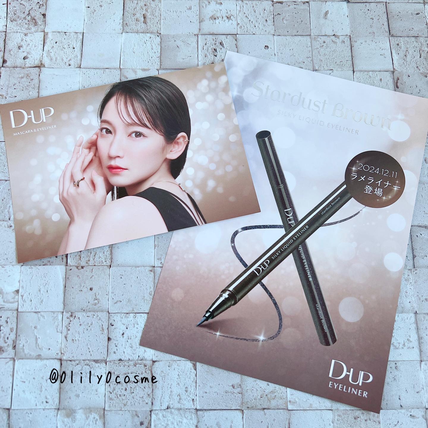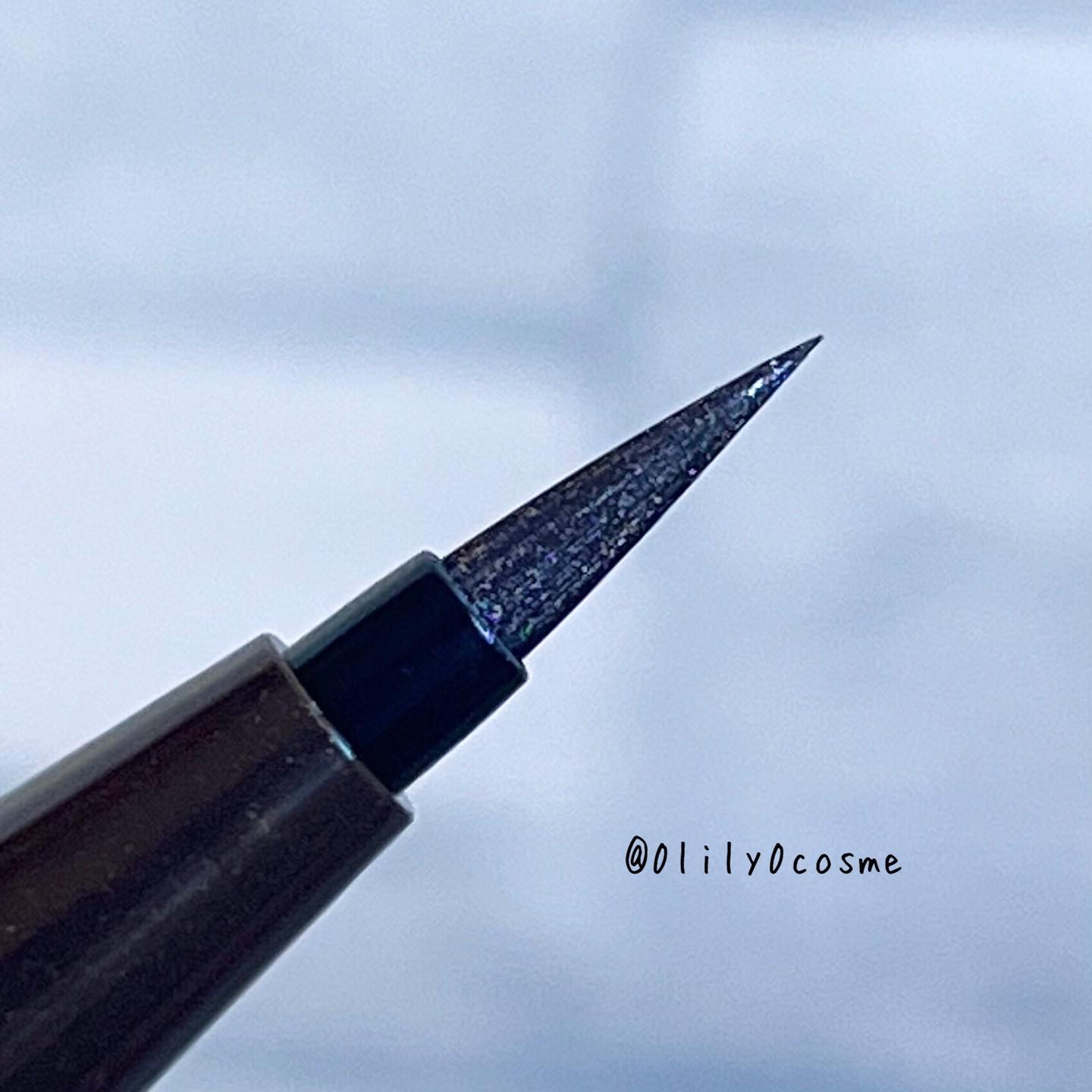 D-UP初のラメ入りアイライナー「星屑ブラウン」⋆✦ 透け感のあるダークブラウンにシルバーや青のラメがきらっきらで可愛い! ぼやけずしっかり盛れるので、遊び心と普段使いしやすさのバランスがちょうどいい。 描きやすさ、落ちにくさ、ラメの密着感はさすがD-UP!という感じの安定感。
