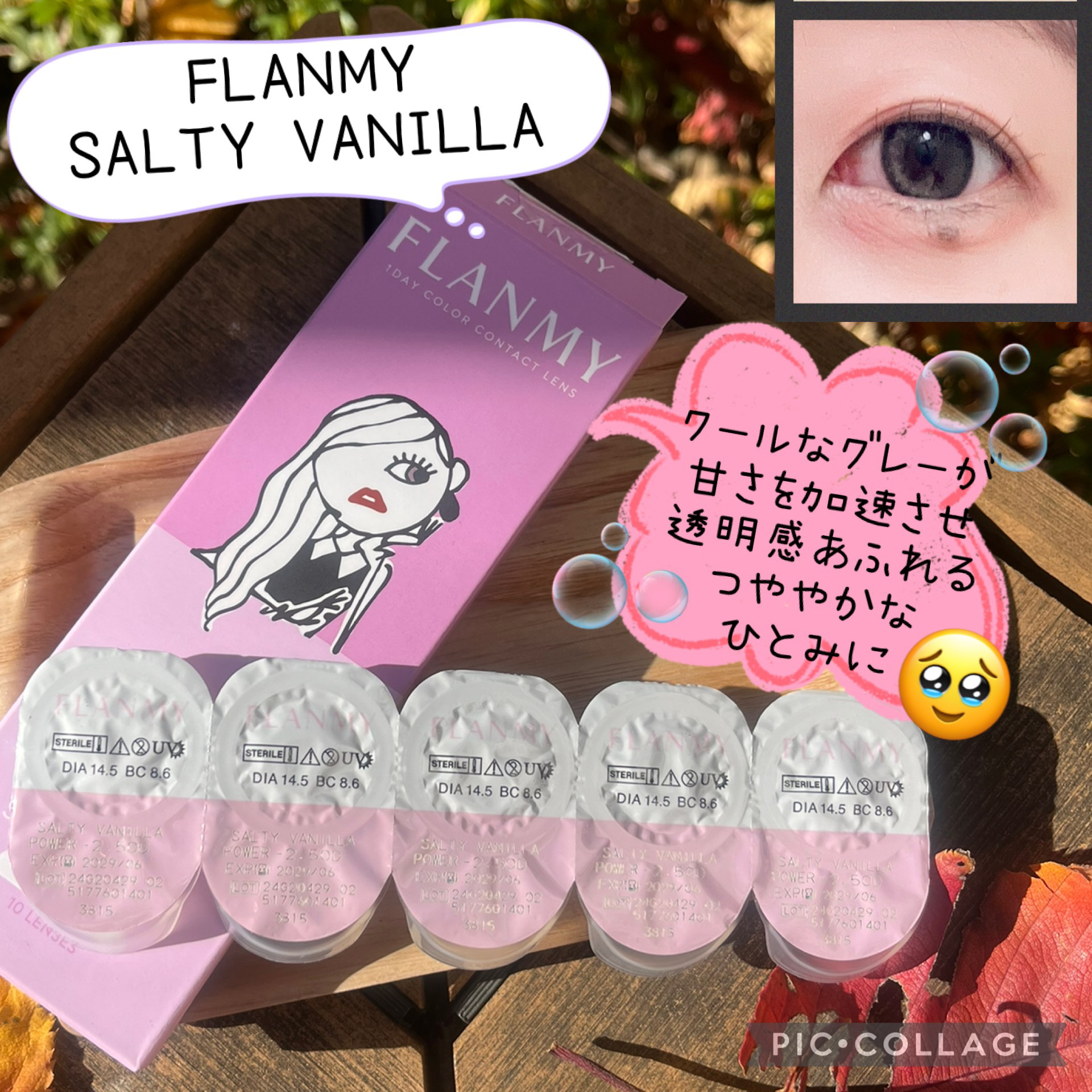 クールなグレーが甘さを加速させ、透明感あふれるつややかな瞳を演出 派手になりすぎないところがさすがのフランミー。グレーのカラコンでも明るすぎず綺麗にグレーがでるカラー。 黄金比率の二層グラデーションで奥行きのある目元に♪