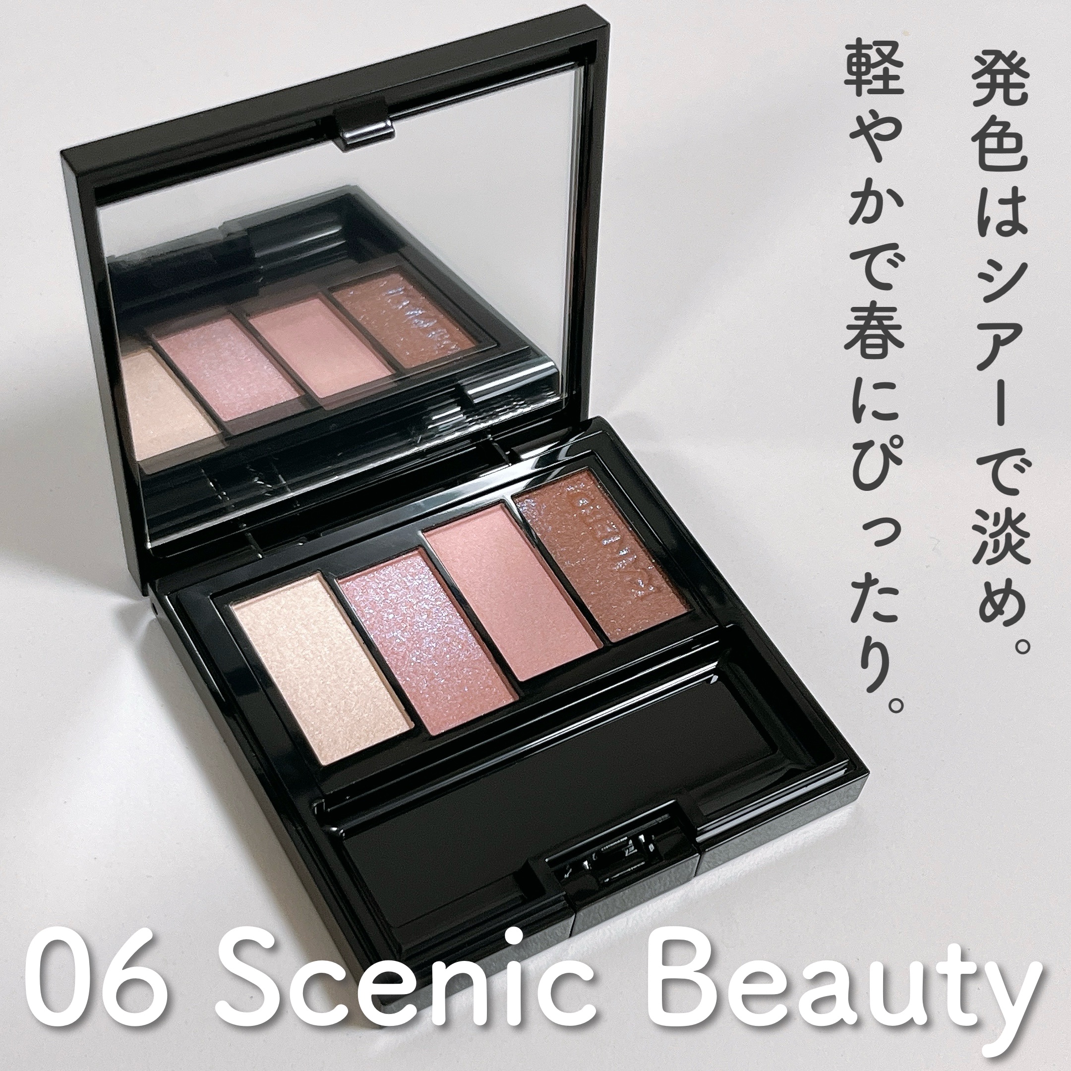 - 彩りのある影で、内なる意志を瞳に宿すようなアイシャドウ。 冴えた影色が、軽やかなのに印象深い陰影をつくり出す。内なる思いを語るような、躍動感のある目もと印象へ。