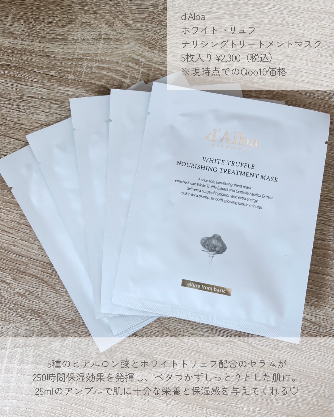 肌に優しく密着するビーガンマスクシートに5種のヒアルロン酸とホワイトトリュフ配合のセラムが250時間保湿効果を発揮してくれるんだそう✨ 顔全体を包み込むリフティングマスクシートがたるんだ肌を引き締め即効リフティング効果を発揮 ☝️ 厚みがあるマスクに美容液がひったひたなんだけど液だれしたりせずお肌はしっとりもっちもち❤️