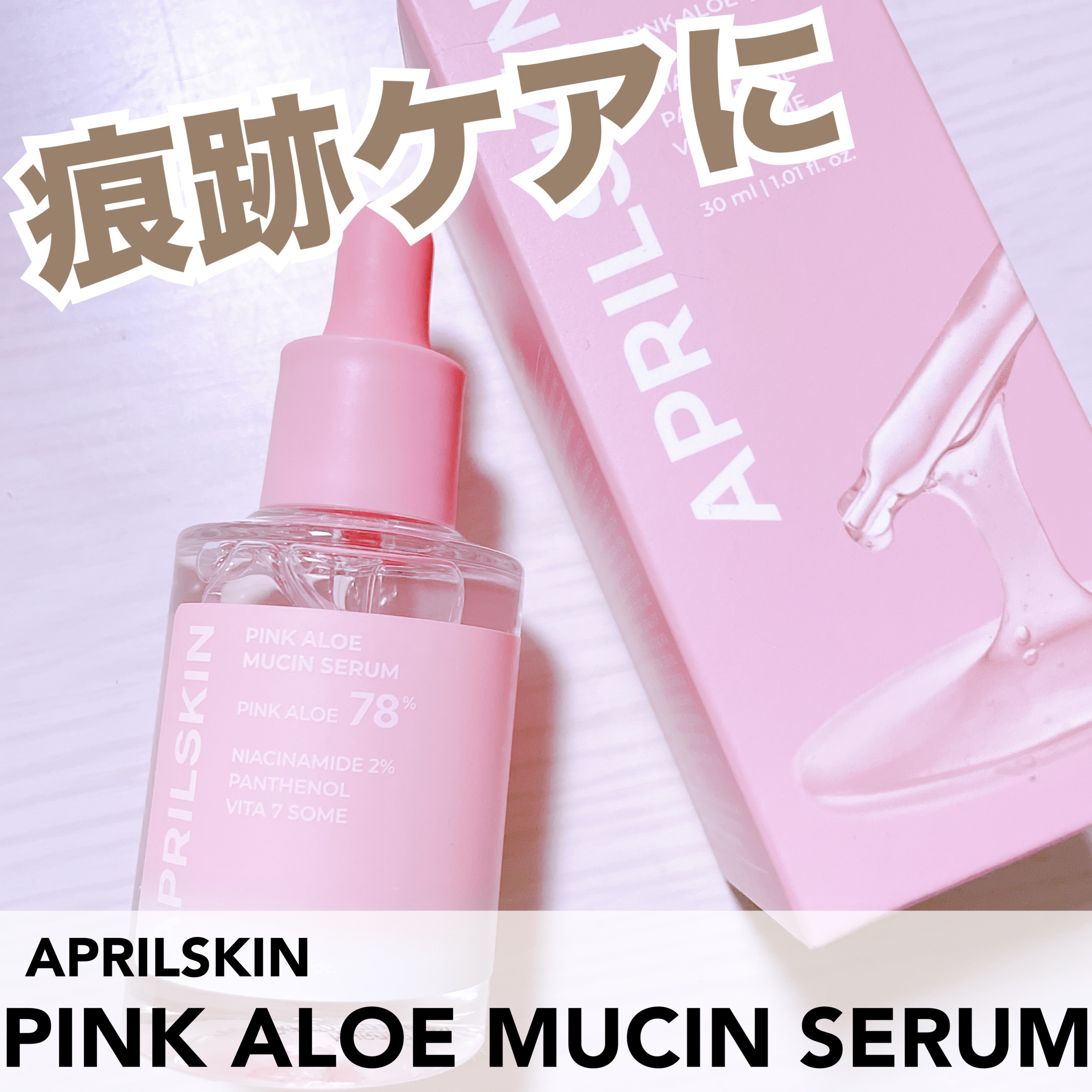 ピンクアロエを78%そのまま閉じ込めた痕跡セラム。一般のアロエよりも198%も効果が高いピンクアロエを使用してます。 つけてみた感じは、もっちりしたテクスチャーで保湿感があります。かといってすーっと馴染んでベタつきはないです😊 頬の乾燥も気になるし、ニキビ跡も気になるからどちらにもアプローチしてくれるのは嬉しいです♥️