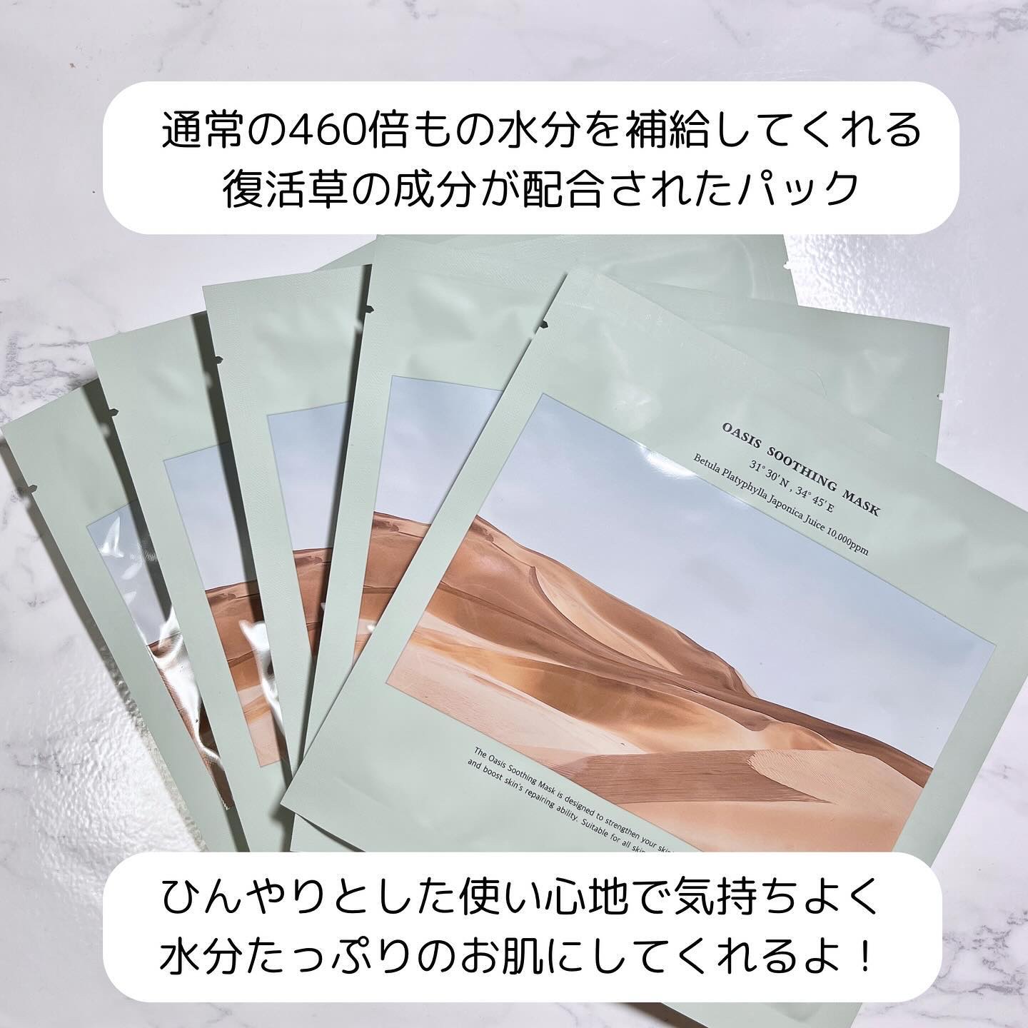 ドクターエルシアのオアシススージングマスクはアンプルがまるまる1本入ったひたひたのマスク😳 薄膜でのシートなのにしっかり水分補給してくれる🩷 復活草エキスやシラカバ樹液配合で、肌に栄養与えてくれる、話題のマスクなんだって! これ使うと一気に水分補給された感じがして、お肌回復☺️🤍