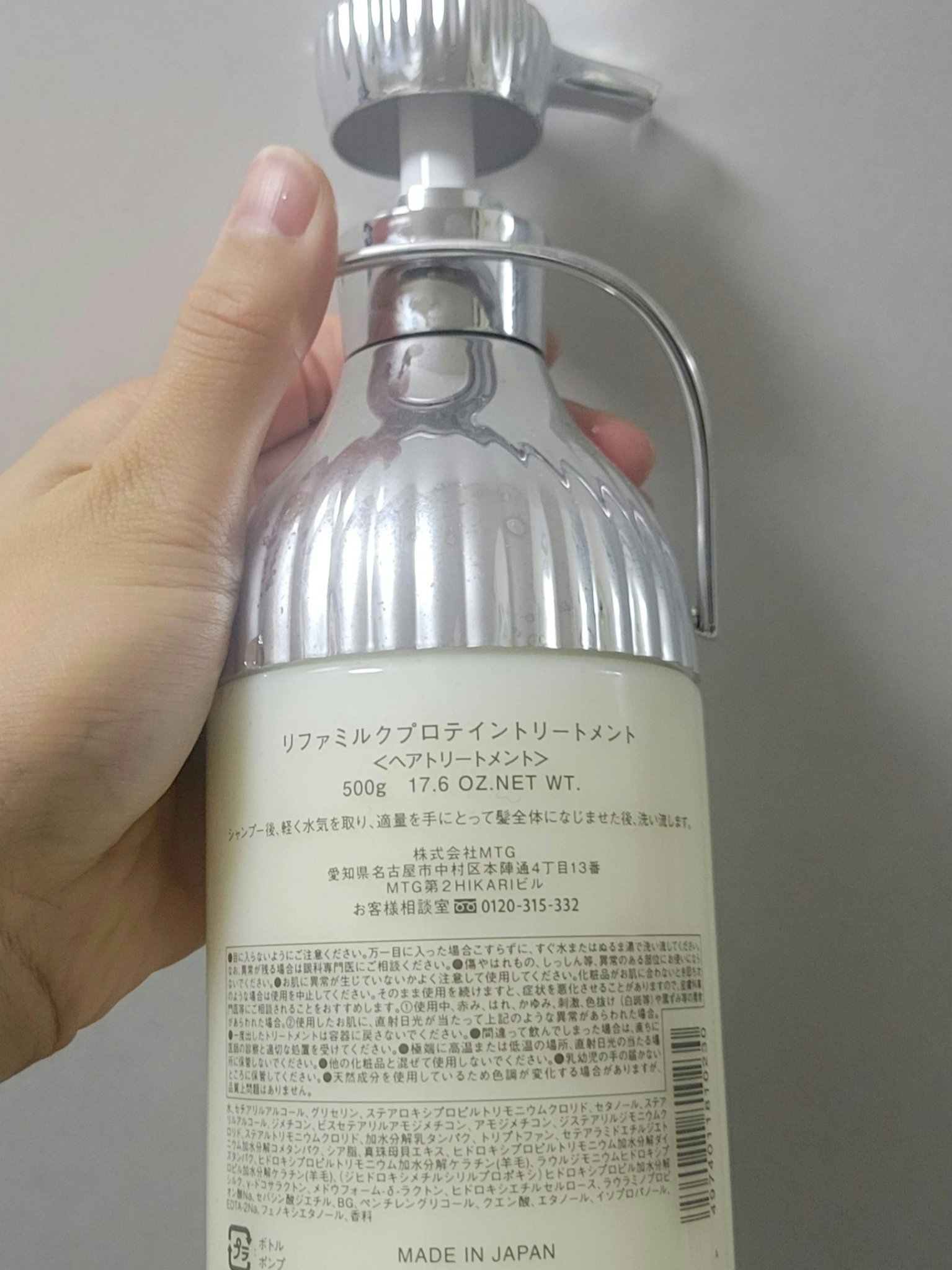 - <シャンプー(500ml)> 水、ラウレス硫酸Na、ラウラミドプロピルベタイン、コカミドMEA、DPG、ココイルグルタミン酸TEA、加水分解乳タンパク、トリプトファン、セテアラミドエチルジエトニウム加水分解コメタンパク、シア脂、真珠母貝エキス、ヒドロキシプロピルトリモニウム加水分解ダイズタンパク、ヒドロキシプロピルトリモニウム加水分解ケラチン(羊毛)、ラウルジモニウムヒドロキシプロピル加水分解ケラチン(羊毛)、(ジヒドロキシメチルシリルプロポキシ)ヒドロキシプロピル加水分解シルク、ラウロイルシルクアミノ酸Na、γ-ドコサラクトン、メドウフォーム-δ-ラクトン、ポリクオタニウム-7、ポリクオタニウム-10、ラウリルグルコシド、ビスセテアリルアモジメチコン、ラウラミノプロピオン酸Na、セバシン酸ジエチル、ジステアリン酸グリコール、BG、グリセリン、ペンチレングリコール、クエン酸、エタノール、安息香酸Na、EDTA-2Na、フェノキシエタノール、香料 <シャンプー詰め替え(430ml)> 水、ラウレス硫酸Na、ラウラミドプロピルベタイン、コカミドMEA、DPG、ココイルグルタミン酸TEA、加水分解乳タンパク、トリプトファン、セテアラミドエチルジエトニウム加水分解コメタンパク、シア脂、真珠母貝エキス、ヒドロキシプロピルトリモニウム加水分解ダイズタンパク、ヒドロキシプロピルトリモニウム加水分解ケラチン(羊毛)、ラウルジモニウムヒドロキシプロピル加水分解ケラチン(羊毛)、(ジヒドロキシメチルシリルプロポキシ)ヒドロキシプロピル加水分解シルク、ラウロイルシルクアミノ酸Na、γ-ドコサラクトン、メドウフォーム-δ-ラクトン、ポリクオタニウム-7、ポリクオタニウム-10、ラウリルグルコシド、ビスセテアリルアモジメチコン、ラウラミノプロピオン酸Na、セバシン酸ジエチル、ジステアリン酸グリコール、BG、グリセリン、ペンチレングリコール、クエン酸、エタノール、安息香酸Na、EDTA-2Na、フェノキシエタノール、香料 <トリートメント(500g)> 水、セテアリルアルコール、グリセリン、ステアロキシプロピルトリモニウムクロリド、セタノール、ステアリルアルコール、ジメチコン、ビスセテアリルアモジメチコン、アモジメチコン、ジステアリルジモニウムクロリド、ステアルトリモニウムクロリド、加水分解乳タンパク、トリプトファン、セテアラミドエチルジエトニウム加水分解コメタンパク、シア脂、真珠母貝エキス、ヒドロキシプロピルトリモニウム加水分解ダイズタンパク、ヒドロキシプロピルトリモニウム加水分解ケラチン(羊毛)、ラウルジモニウムヒドロキシプロピル加水分解ケラチン(羊毛)、(ジヒドロキシメチルシリルプロポキシ)ヒドロキシプロピル加水分解シルク、γ-ドコサラクトン、メドウフォーム-δ-ラクトン、ヒドロキシエチルセルロース、ラウラミノプロピオン酸Na、セバシン酸ジエチル、BG、ペンチレングリコール、クエン酸、エタノール、イソプロパノール、EDTA-2Na、フェノキシエタノール、香料 <トリートメント詰め替え(430g)> 水、セテアリルアルコール、グリセリン、ステアロキシプロピルトリモニウムクロリド、セタノール、ステアリルアルコール、ジメチコン、ビスセテアリルアモジメチコン、アモジメチコン、ジステアリルジモニウムクロリド、ステアルトリモニウムクロリド、加水分解乳タンパク、トリプトファン、セテアラミドエチルジエトニウム加水分解コメタンパク、シア脂、真珠母貝エキス、ヒドロキシプロピルトリモニウム加水分解ダイズタンパク、ヒドロキシプロピルトリモニウム加水分解ケラチン(羊毛)、ラウルジモニウムヒドロキシプロピル加水分解ケラチン(羊毛)、(ジヒドロキシメチルシリルプロポキシ)ヒドロキシプロピル加水分解シルク、γ-ドコサラクトン、メドウフォーム-δ-ラクトン、ヒドロキシエチルセルロース、ラウラミノプロピオン酸Na、セバシン酸ジエチル、BG、ペンチレングリコール、クエン酸、エタノール、イソプロパノール、EDTA-2Na、フェノキシエタノール、香料