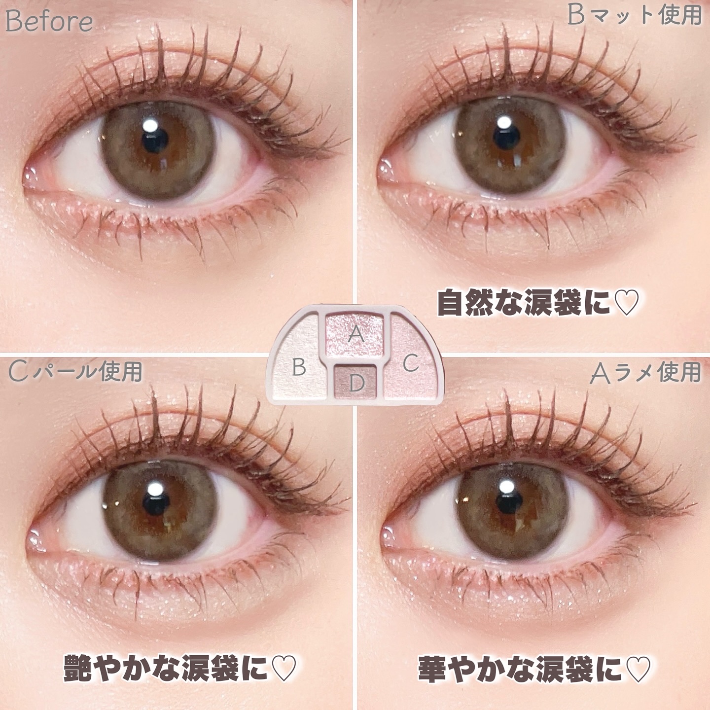 - 10月上旬よりプラザにて先行発売中 もーっとぷっくり!!* マット・パール・ラメ入りで3パターンの涙袋が作れる 涙袋用アイシャドウパレット *メイクアップ効果による 涙袋はとにかく盛りたい! 既存のプランぷくコーデアイズじゃ、もの足りない方へオススメ! より、ぷっくりな涙袋が作れるNeoタイプが登場しました。 涙袋用に3色、涙袋の影用に1色がセットされた 涙袋用のアイシャドウパレットです。 既存のプランぷくコーデアイズと比較して… マットは、密着力・発色UP パールは、大きいパールの配合量がUP ラメは、大きい白ラメの配合量がUP 血色影は、影感強めになっています♪