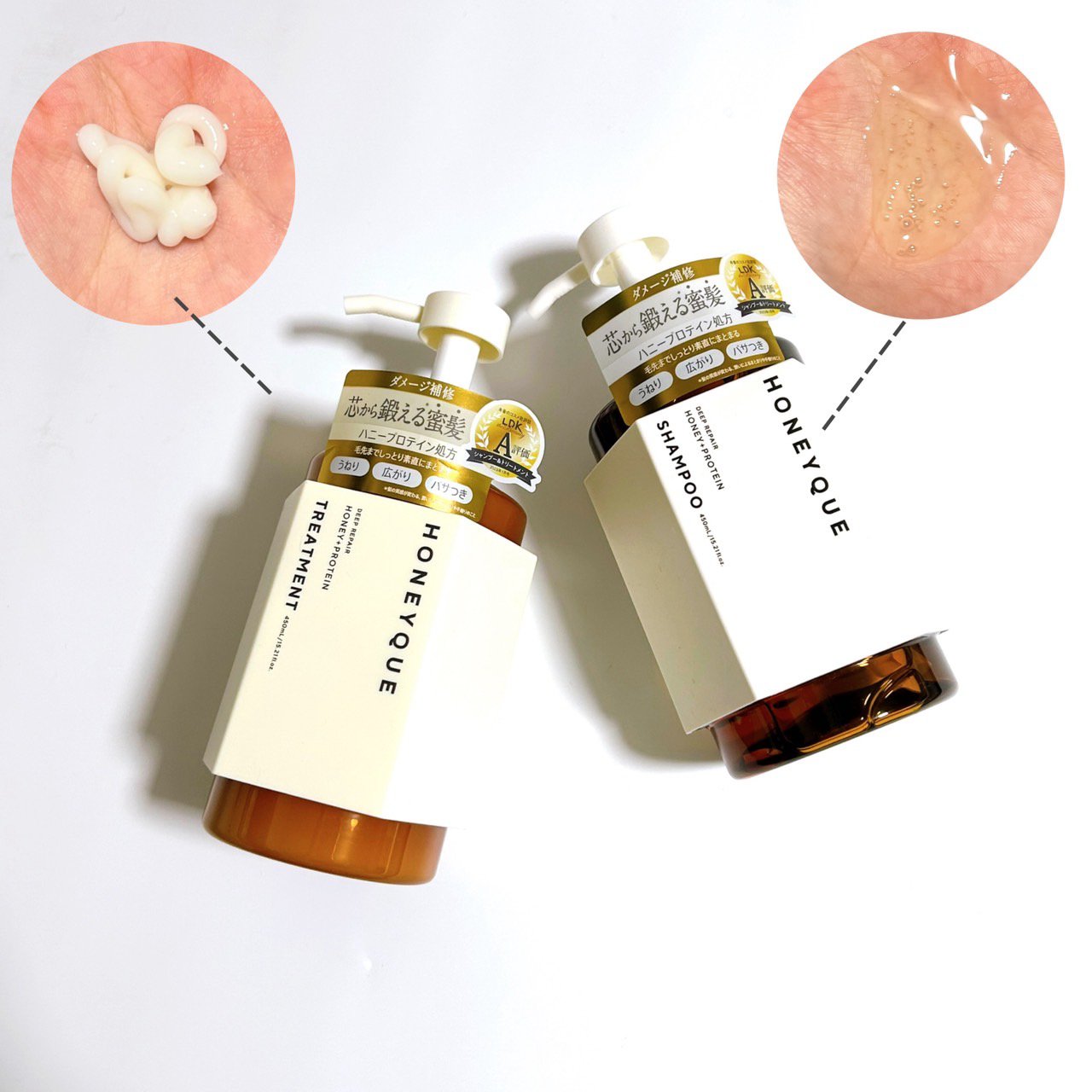 ハニークは髪の芯まで潤いながらダメージ補修する、ハニープロテイン処方のヘアケアブランド🍯 ハチミツだけど重たくない、しっとりでさらさらとした仕上がりˊ˗ ぺたっとしにくいので髪の毛が細い人にもおすすめです✦ アクアブロッサムハニーの香りは、ハチミツと爽やかさを感じるいい香り🍯ˊ˗