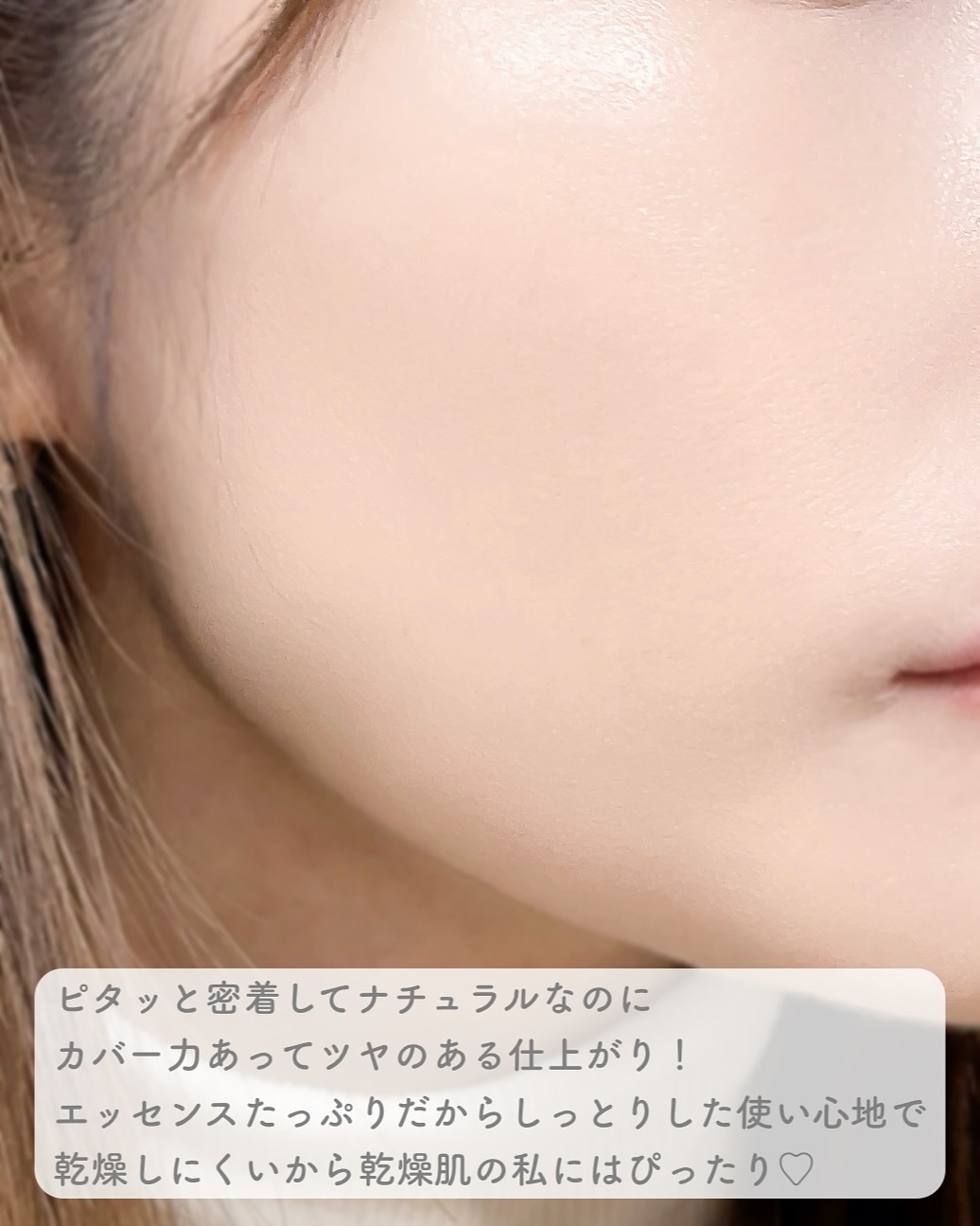 なめらかなテクスチャーで乾燥によるくすみ、色むらをナチュラルにカバーして生ツヤ肌*に✨ SPF50+・PA++++で紫外線対策も◎ つやんとした仕上がりで普段のメイクはこれだけで済ませちゃうぐらい気に入ってる🥺